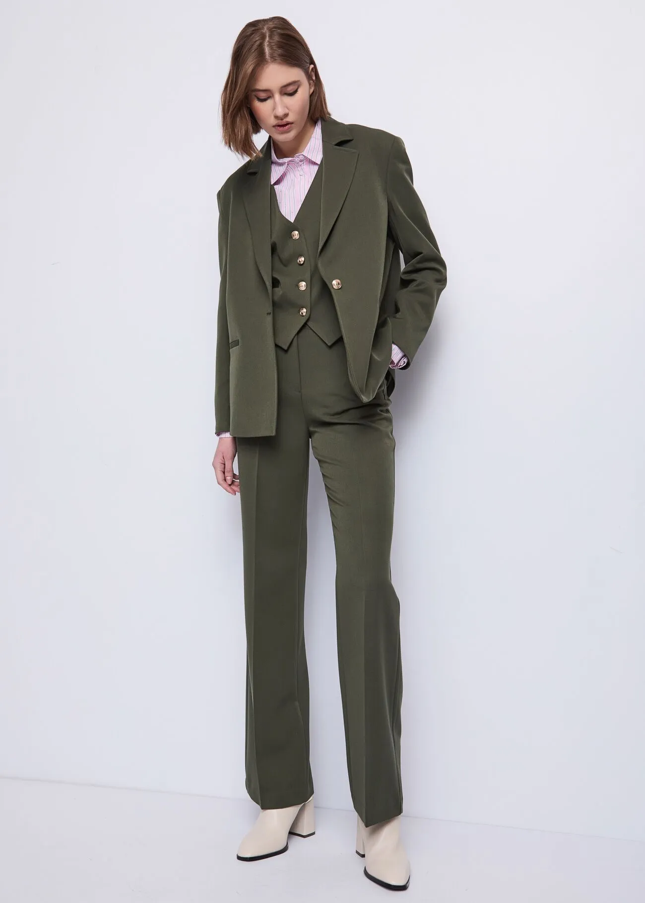 Optez pour ce gilet en viscose mélangée extensible avec poches passepoilées et boutons dorés. Des lignes épurées et une coupe ajustée pour une allure raffinée.