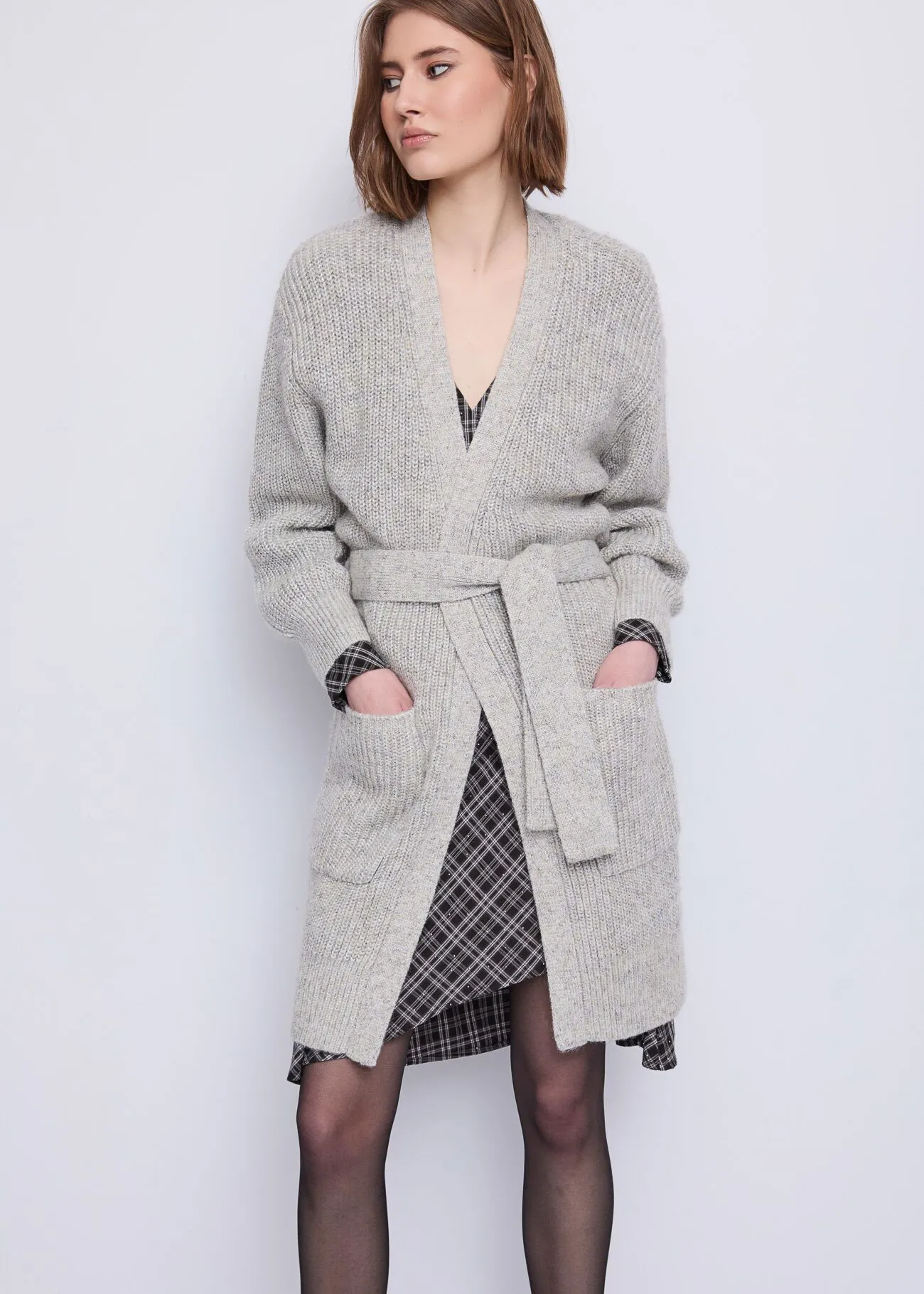Optez pour ce manteau en mélange de laine et de lurex, avec sa ceinture assortie. Idéal pour se réchauffer en hiver.