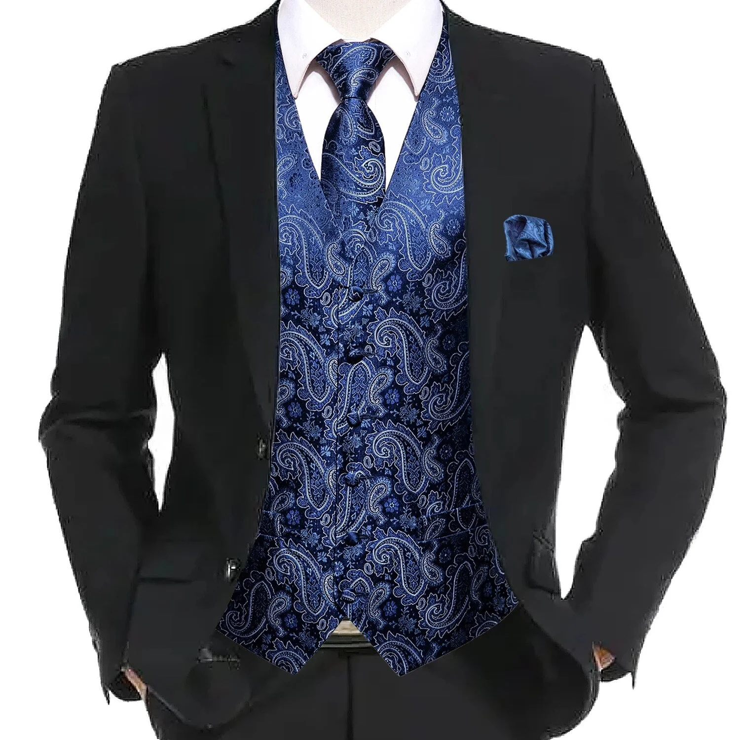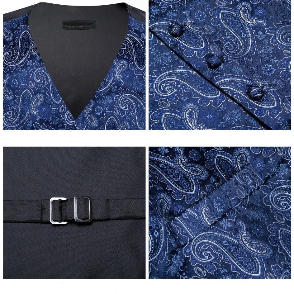 - Type : Gilet de costume avec cravate, boutons de manchettes et mouchoir de poche