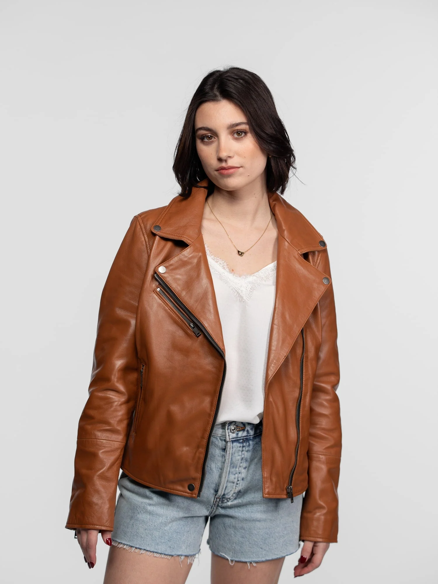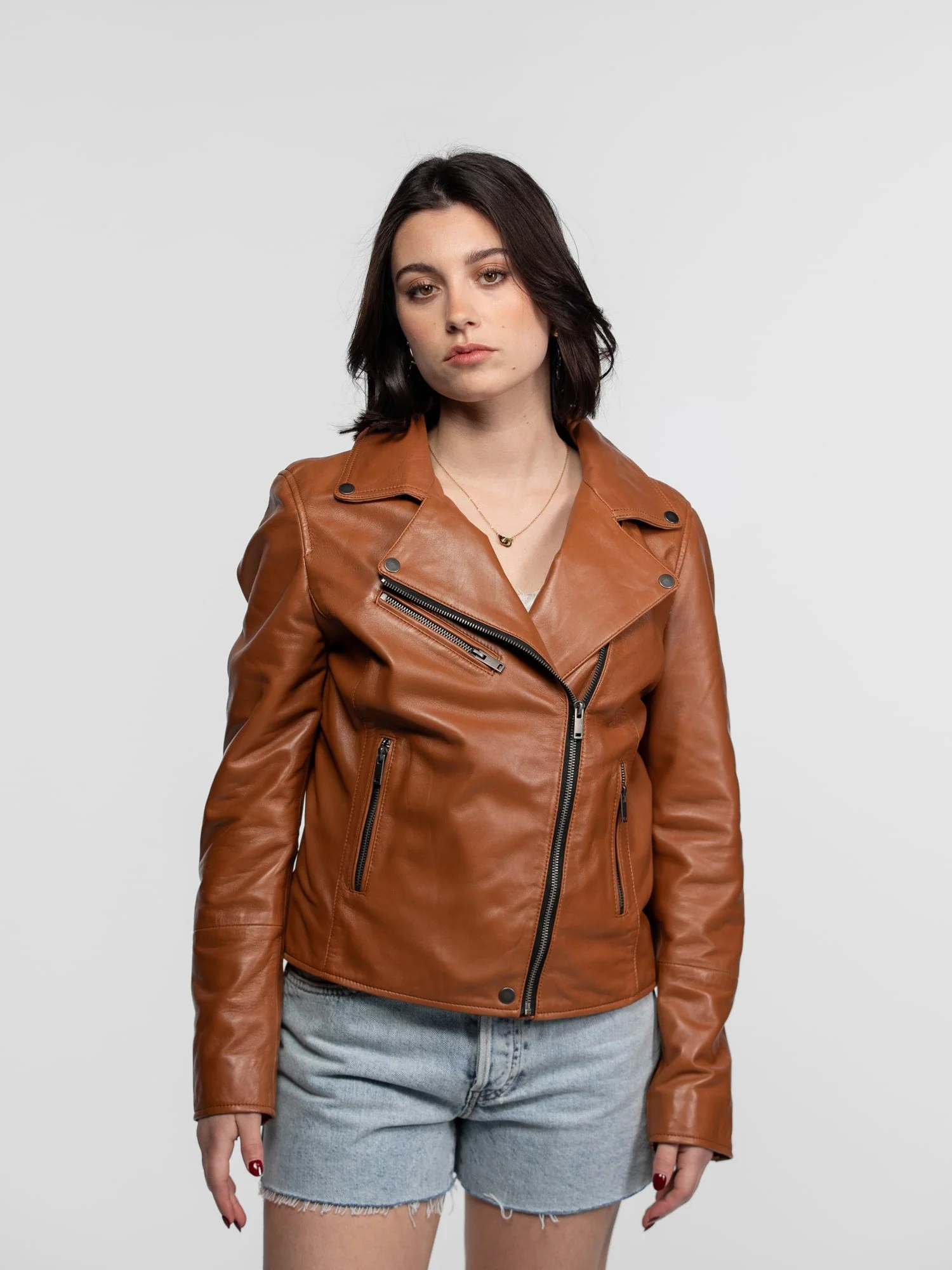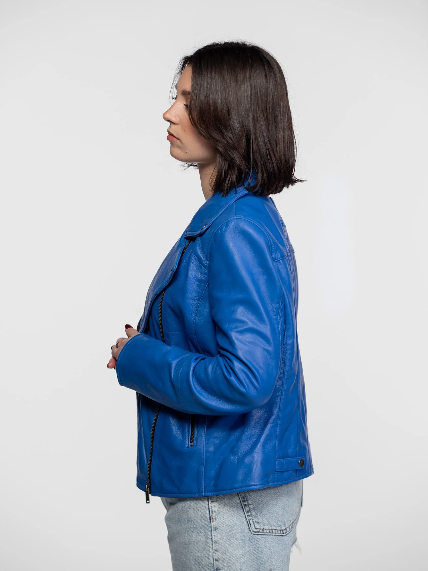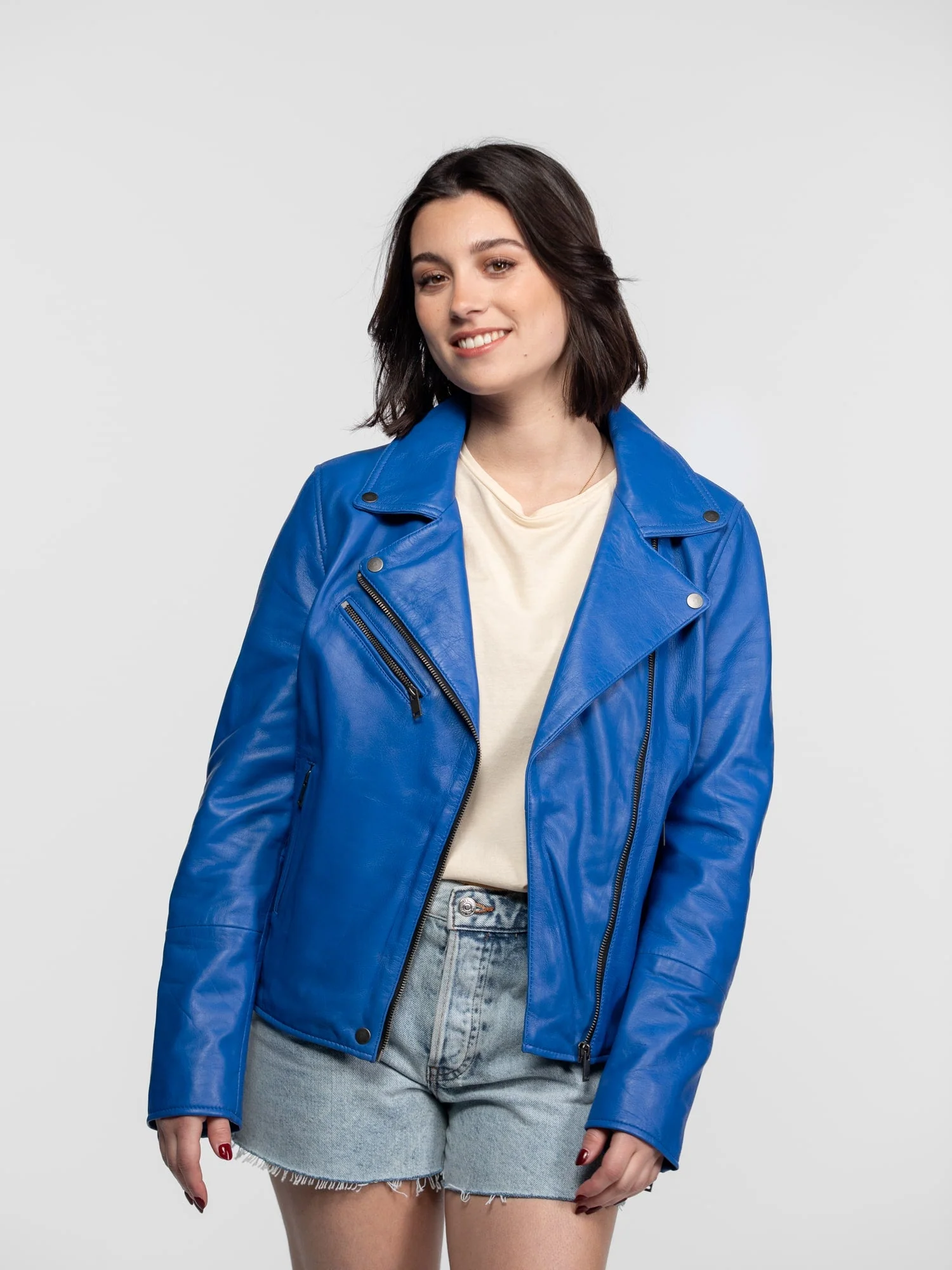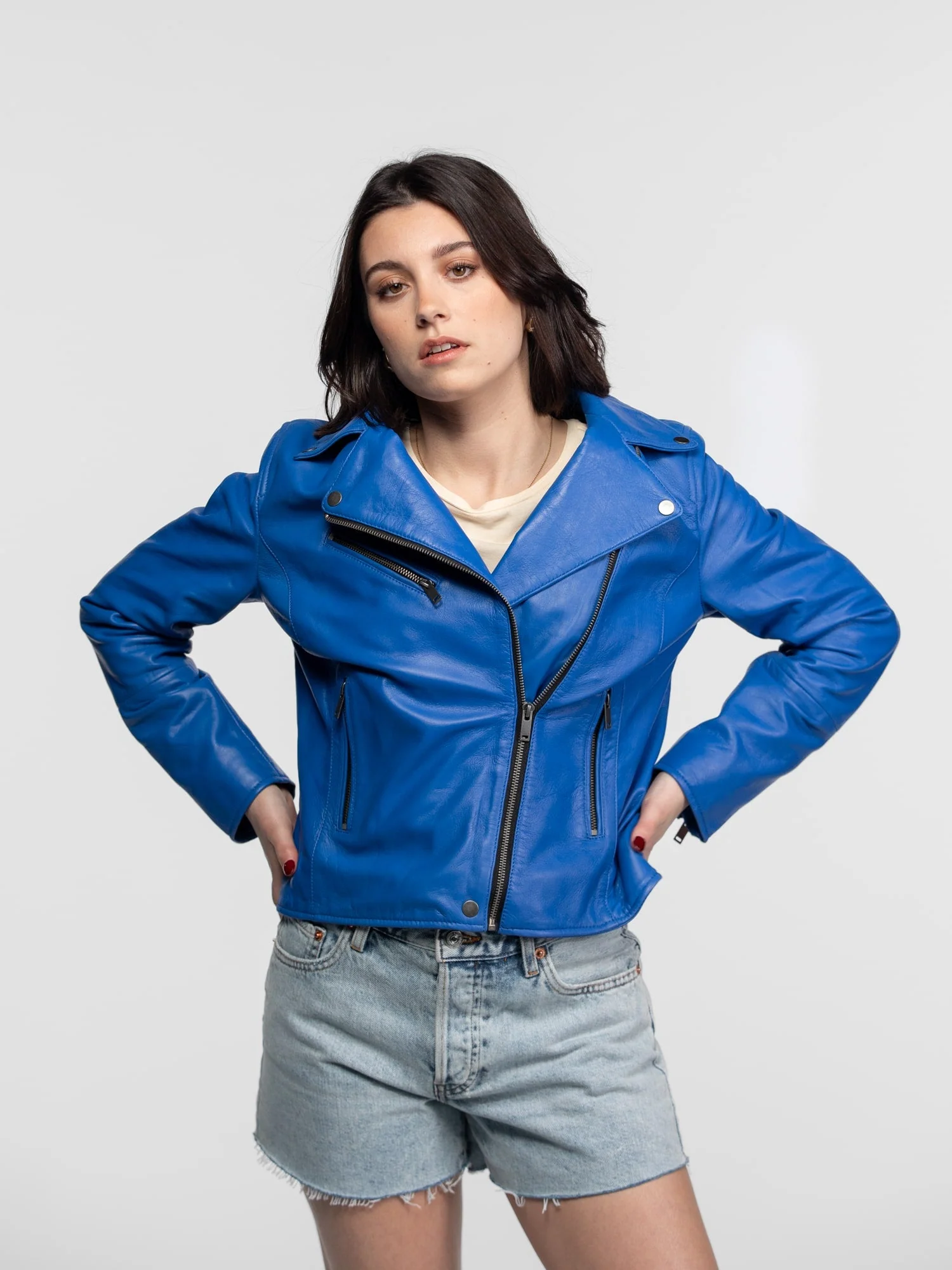 Confectionné en cuir de mouton lisse, ce blouson se distingue par sa finition mate et son tombé souple, qui épouse la silhouette sans la contraindre. Sa coupe ajustée féminise l’allure rock, tandis que les détails emblématiques affirment une attitude assumée. Une pièce forte, pensée pour traverser les saisons sans jamais se démoder.