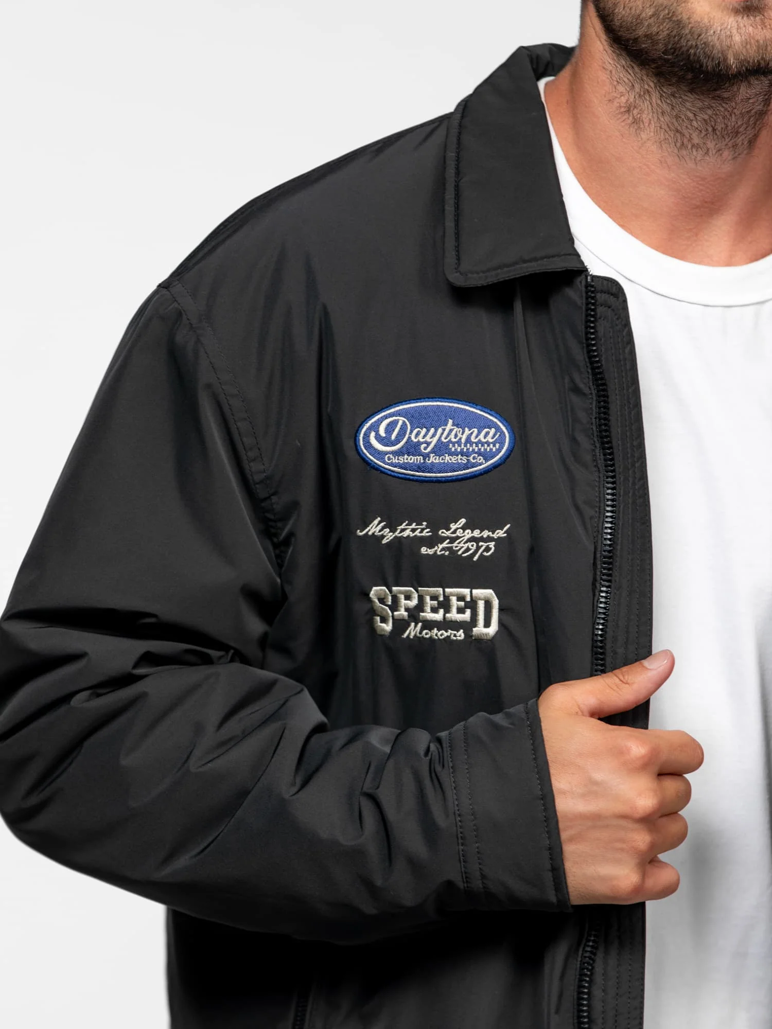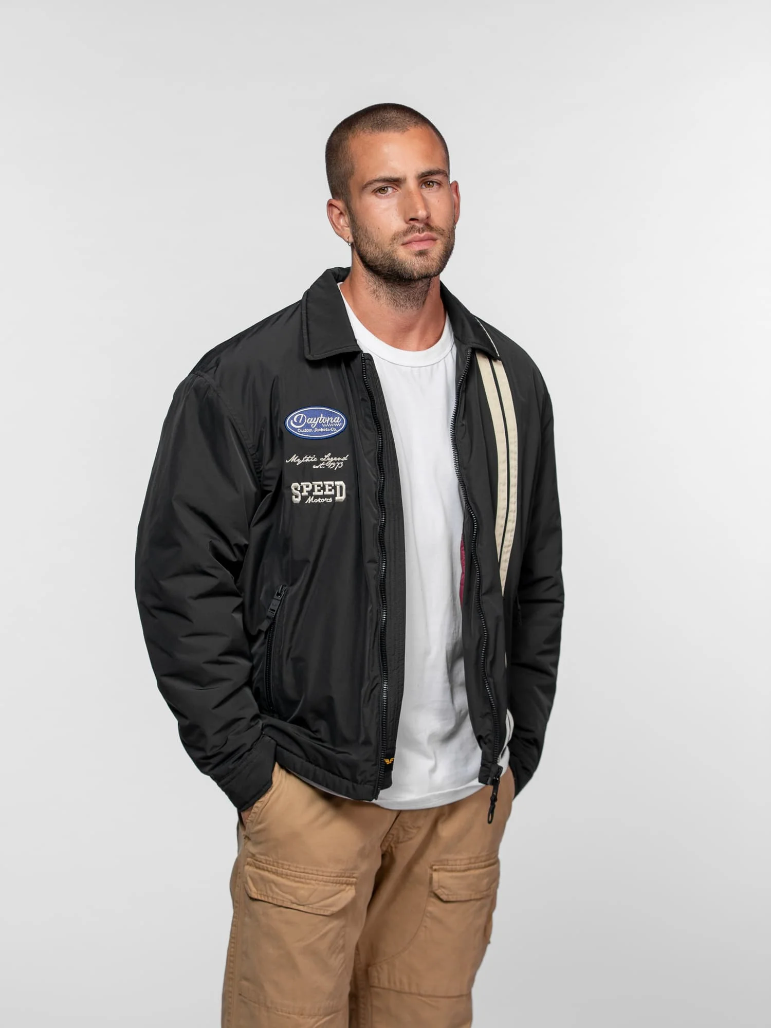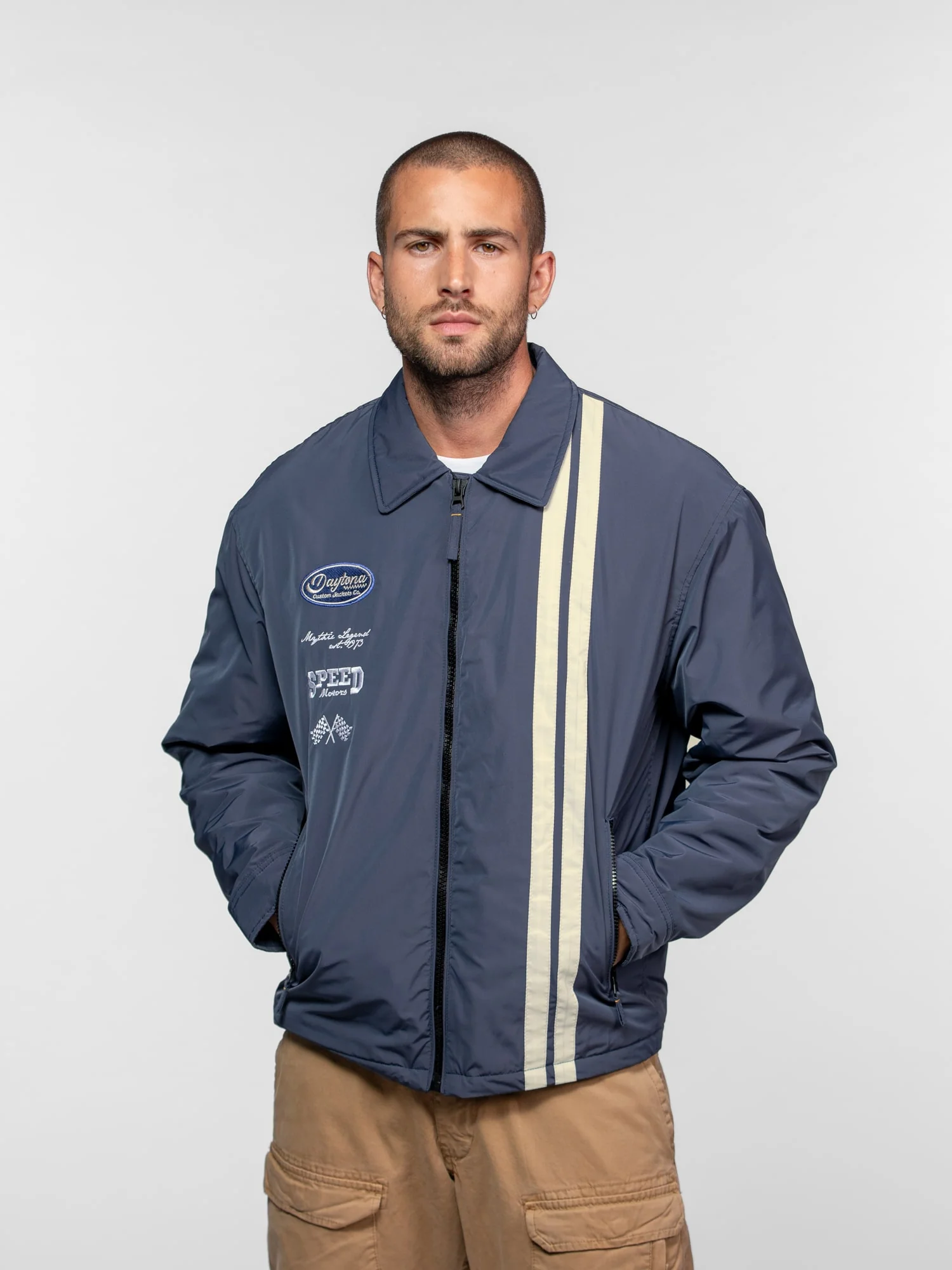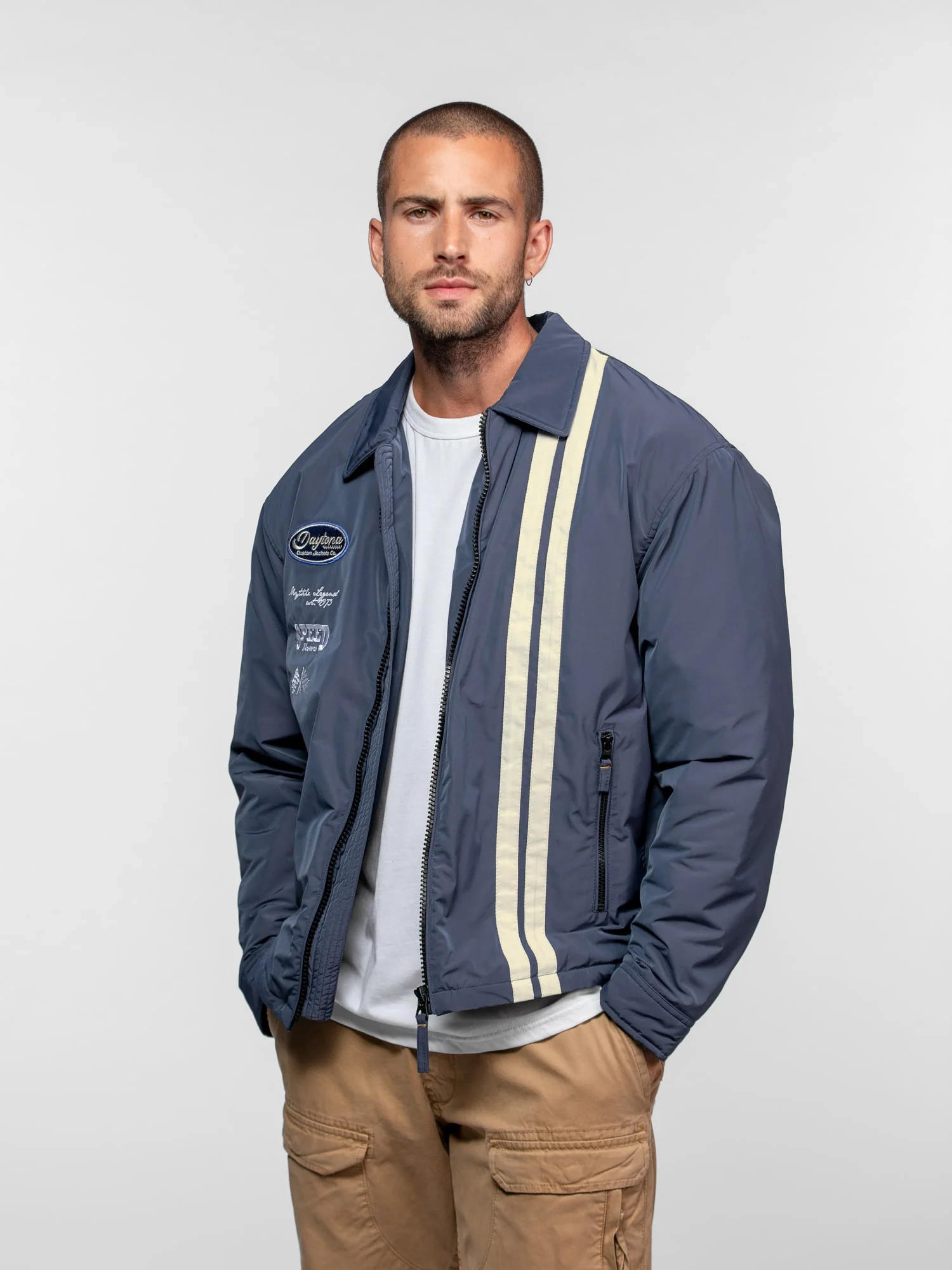 Inspirée des légendes de la course automobile, cette veste en nylon allie un style rétro racing avec une touche moderne. Les patchs brodés, rappelant les voitures de course des années 60 et 70, ajoutent une dimension authentique.