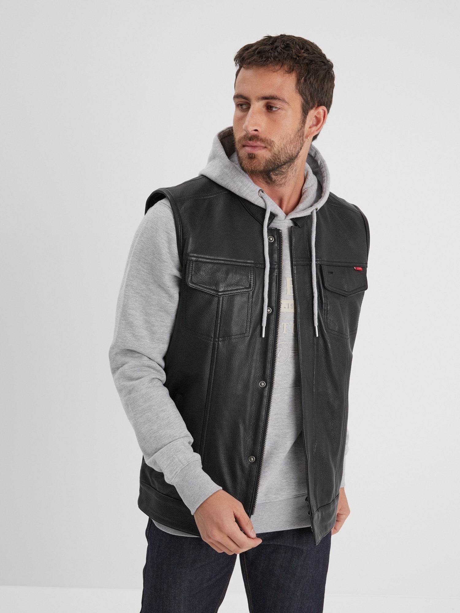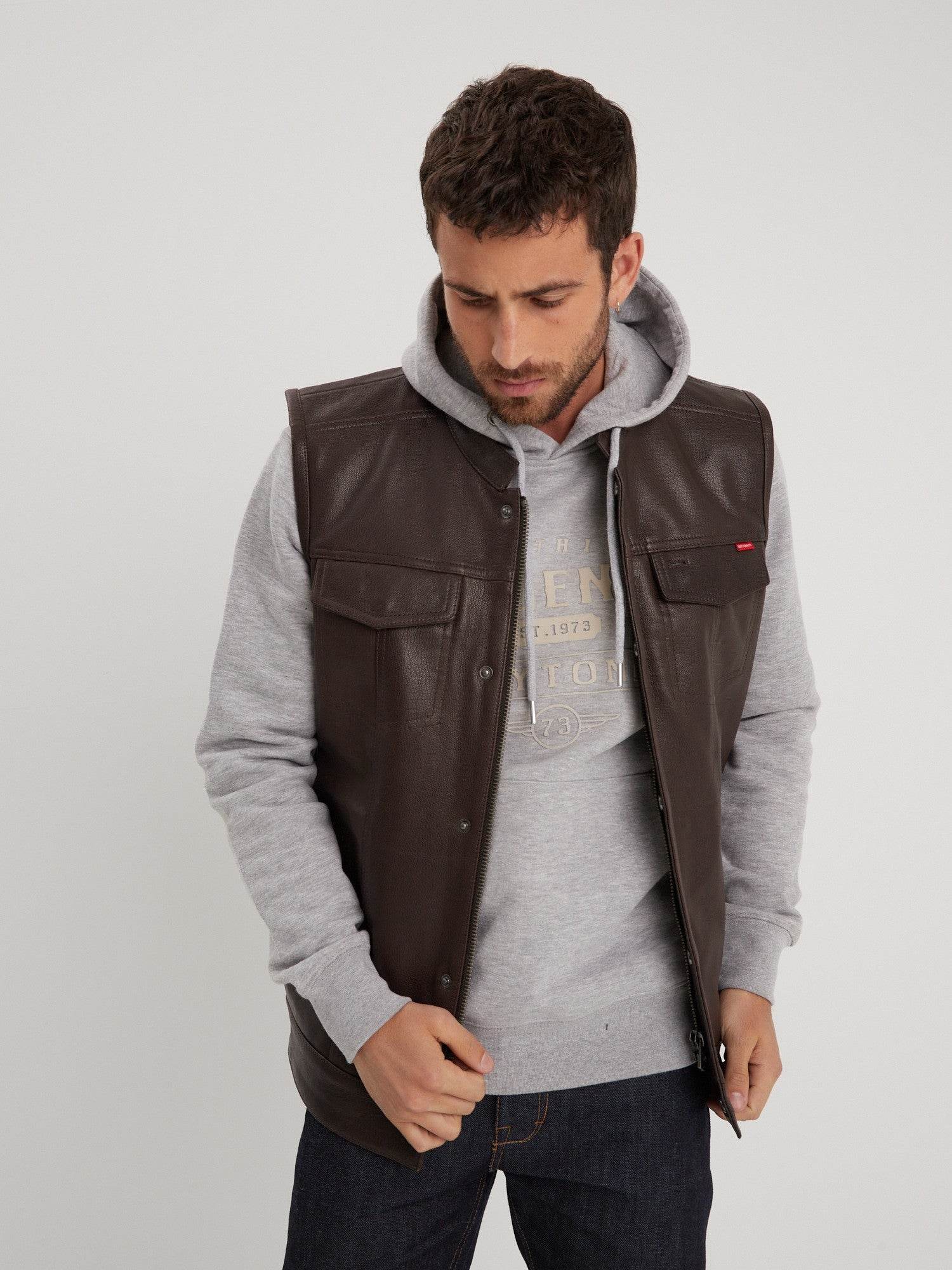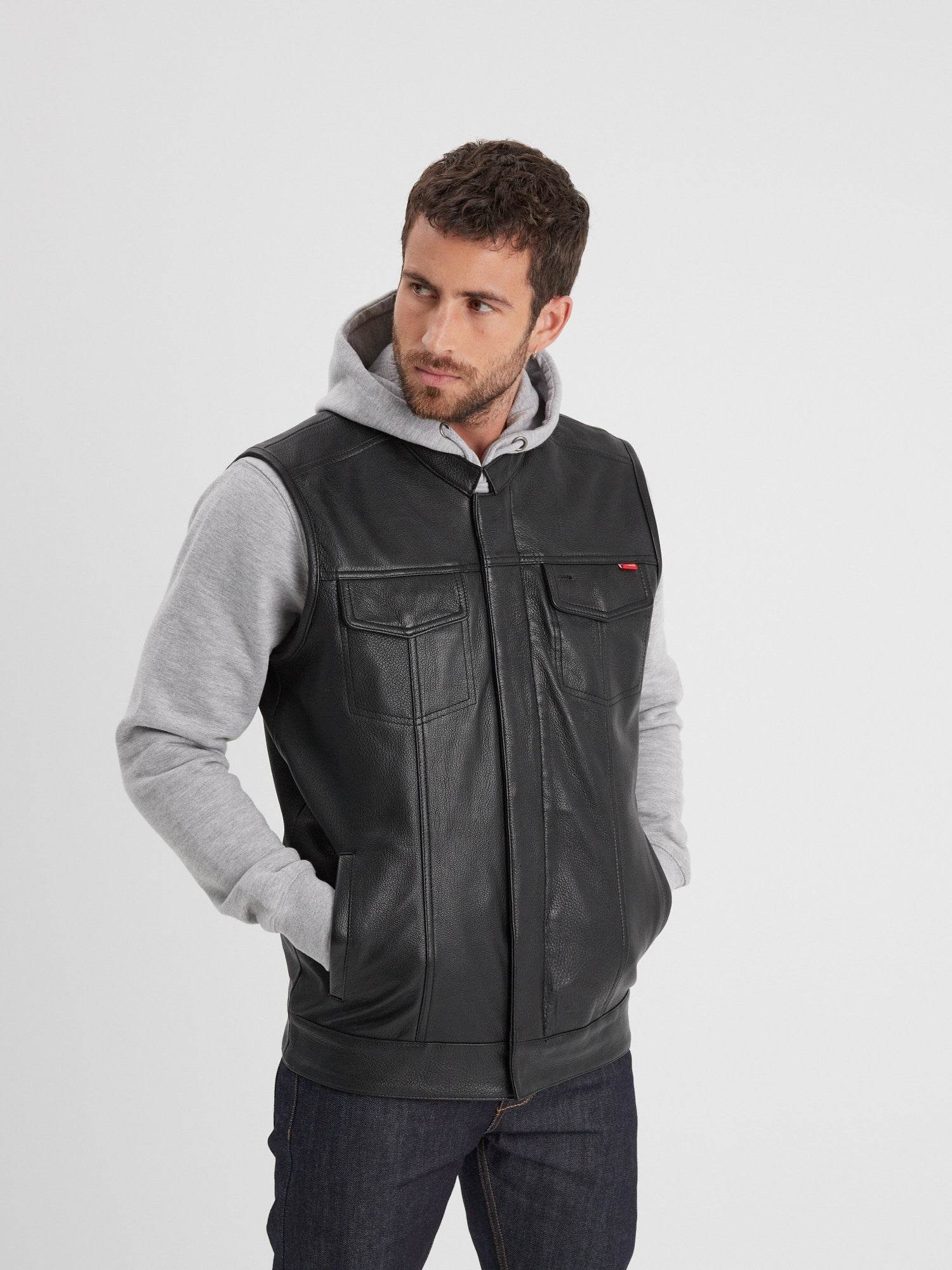 Hot road – Gilet biker cuir homme