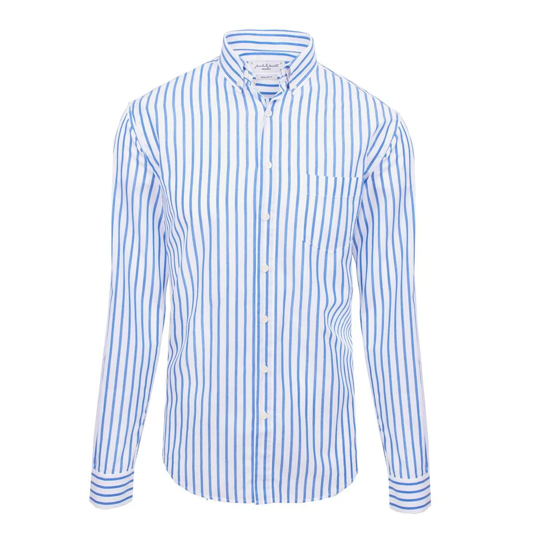 HOWARD – Chemise Popeline Manches longues Coupe droite – Homme – Blanc/Bleu ciel