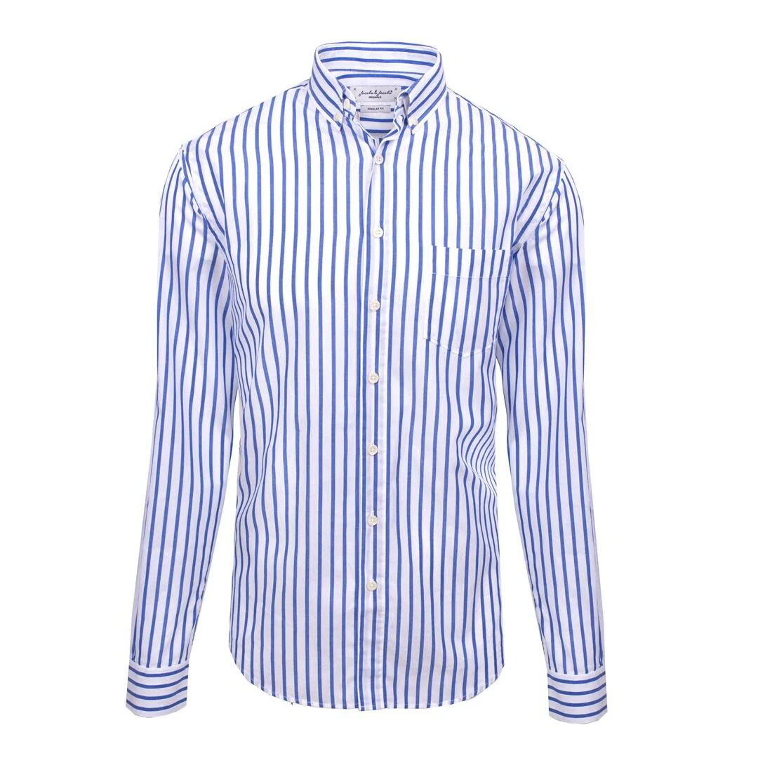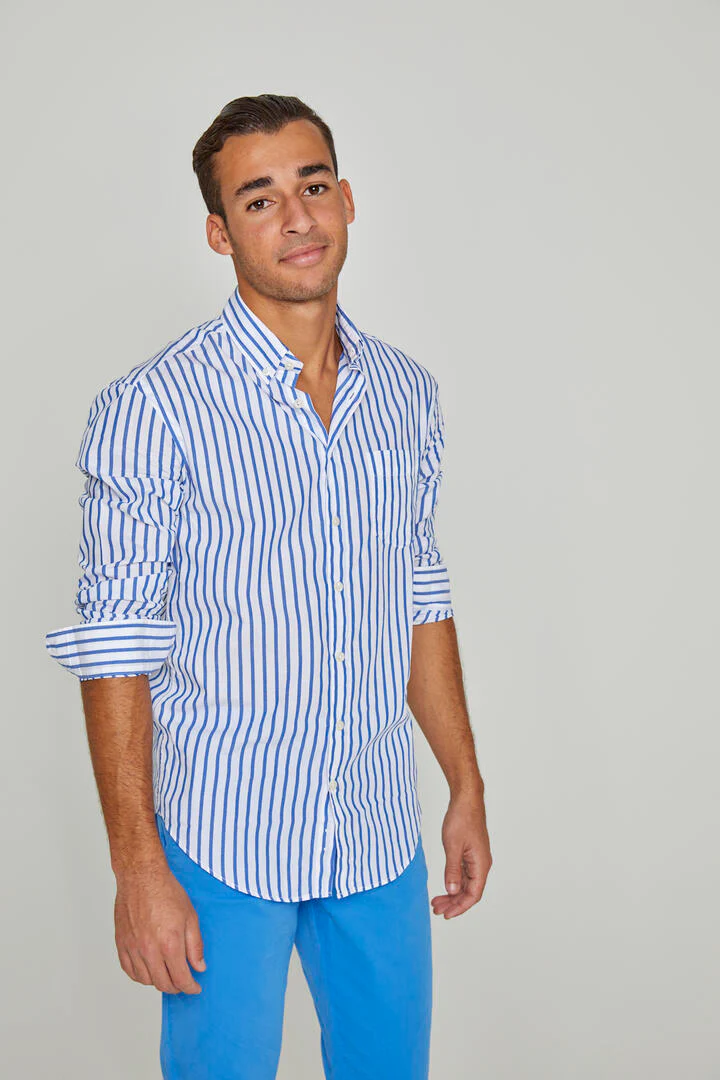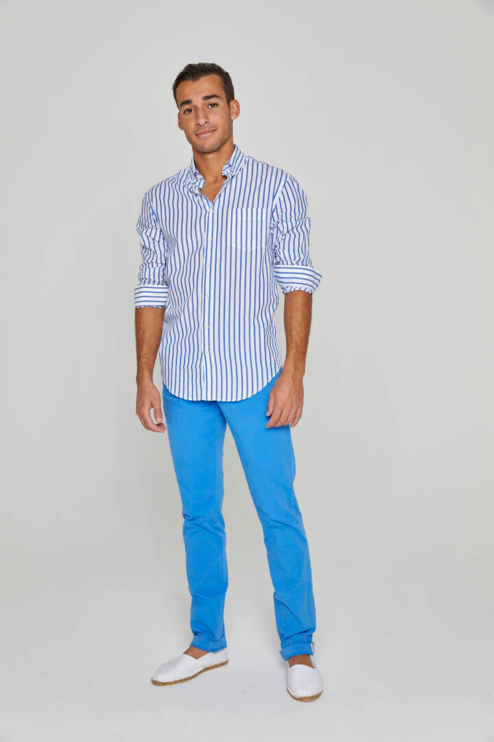 HOWARD – Chemise Popeline Manches longues Coupe droite – Homme – Blanc/Bleu royal