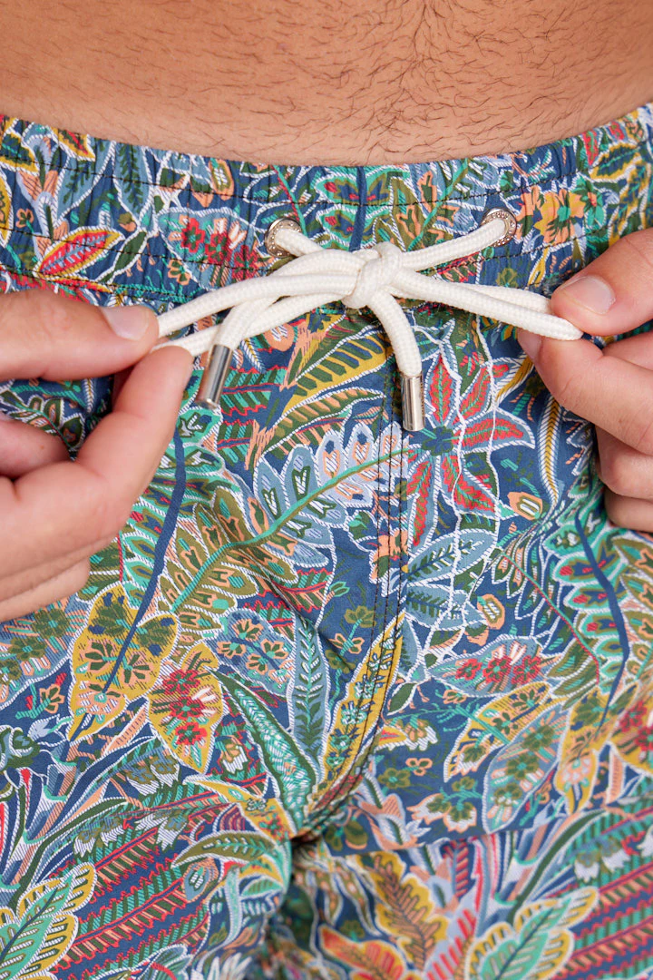 • Le short de bain IPANEMA se distingue par ses imprimés colorés et raffinés, réalisés dans le tissu iconique Liberty of London. Léger, élégant et agréable à porter, c’est la pièce idéale pour ajouter une touche de style à vos journées d’été.