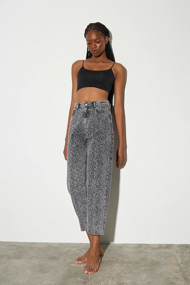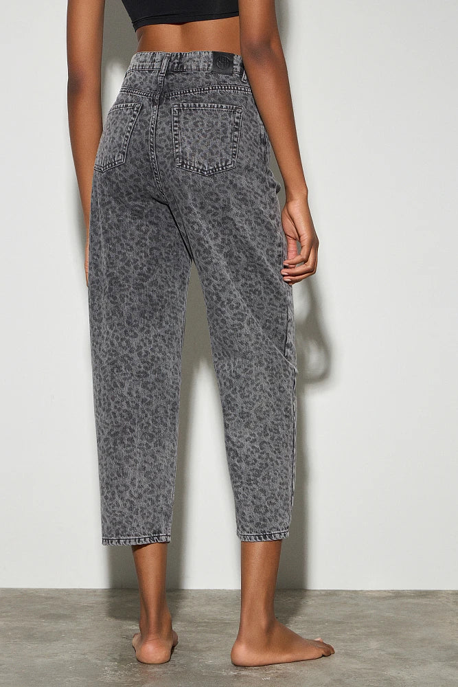 Jean ballon Tania, fermeture boutonnée et zippée, avec poches, léopard, taille haute, denim