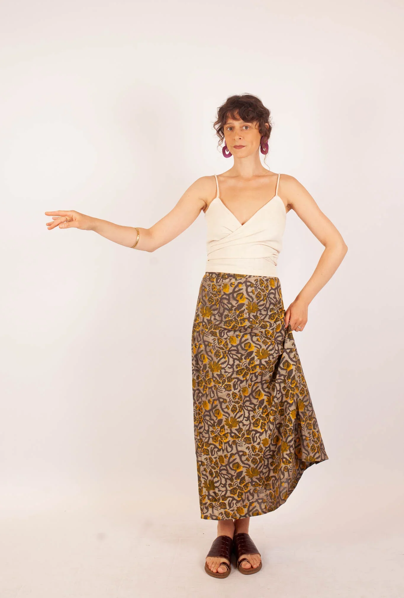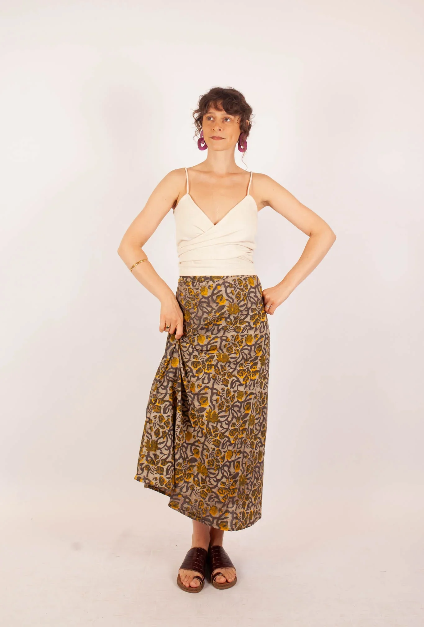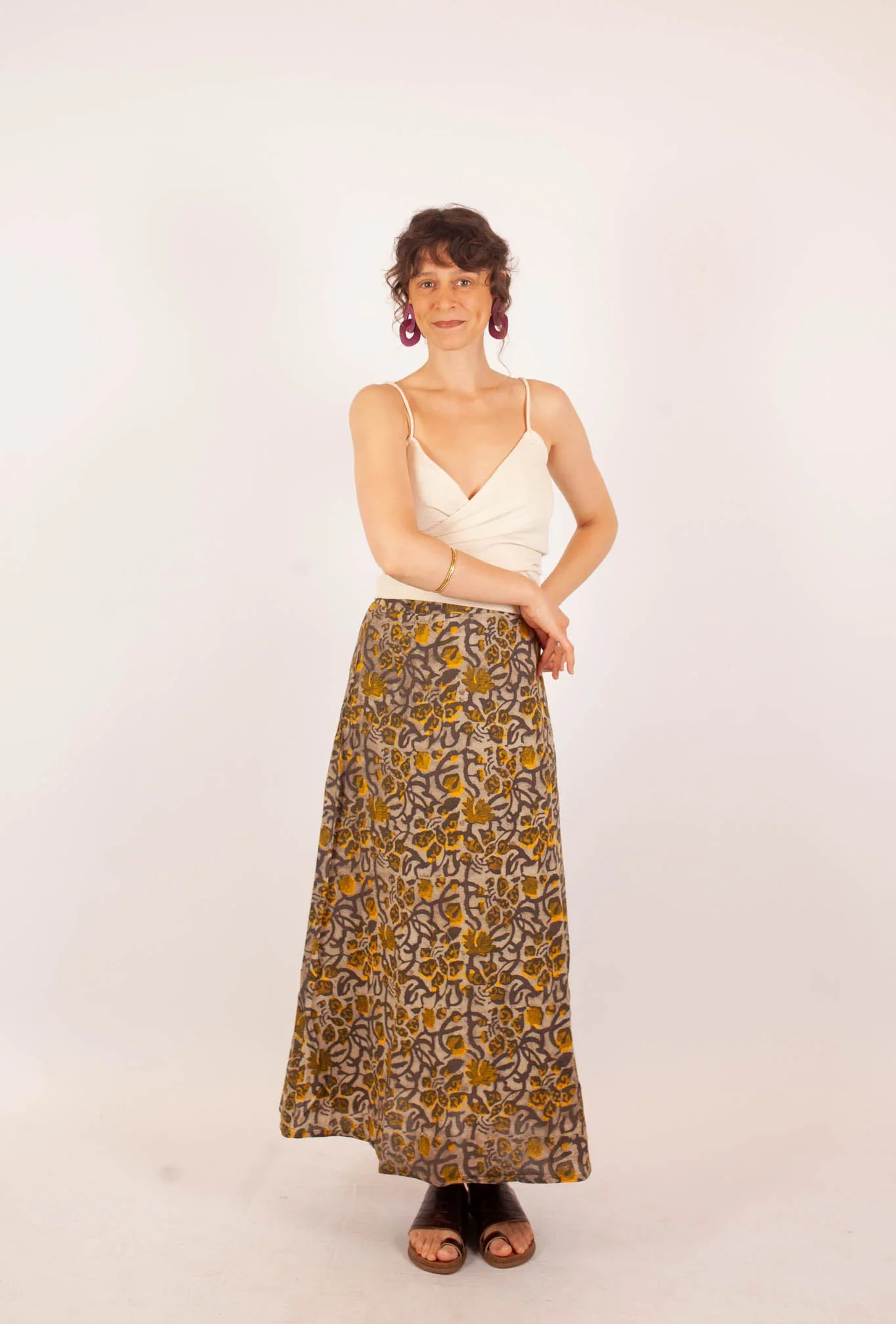 La jupe Bagepalli en coton bio imprimé fleuri Khilana jaune et gris, est parfaite pour tous vos looks, avec sa coupe longue et évasée ! C’est un basique parfait pour l’été, qui peut s’assortir facilement avec un haut Azaadi.