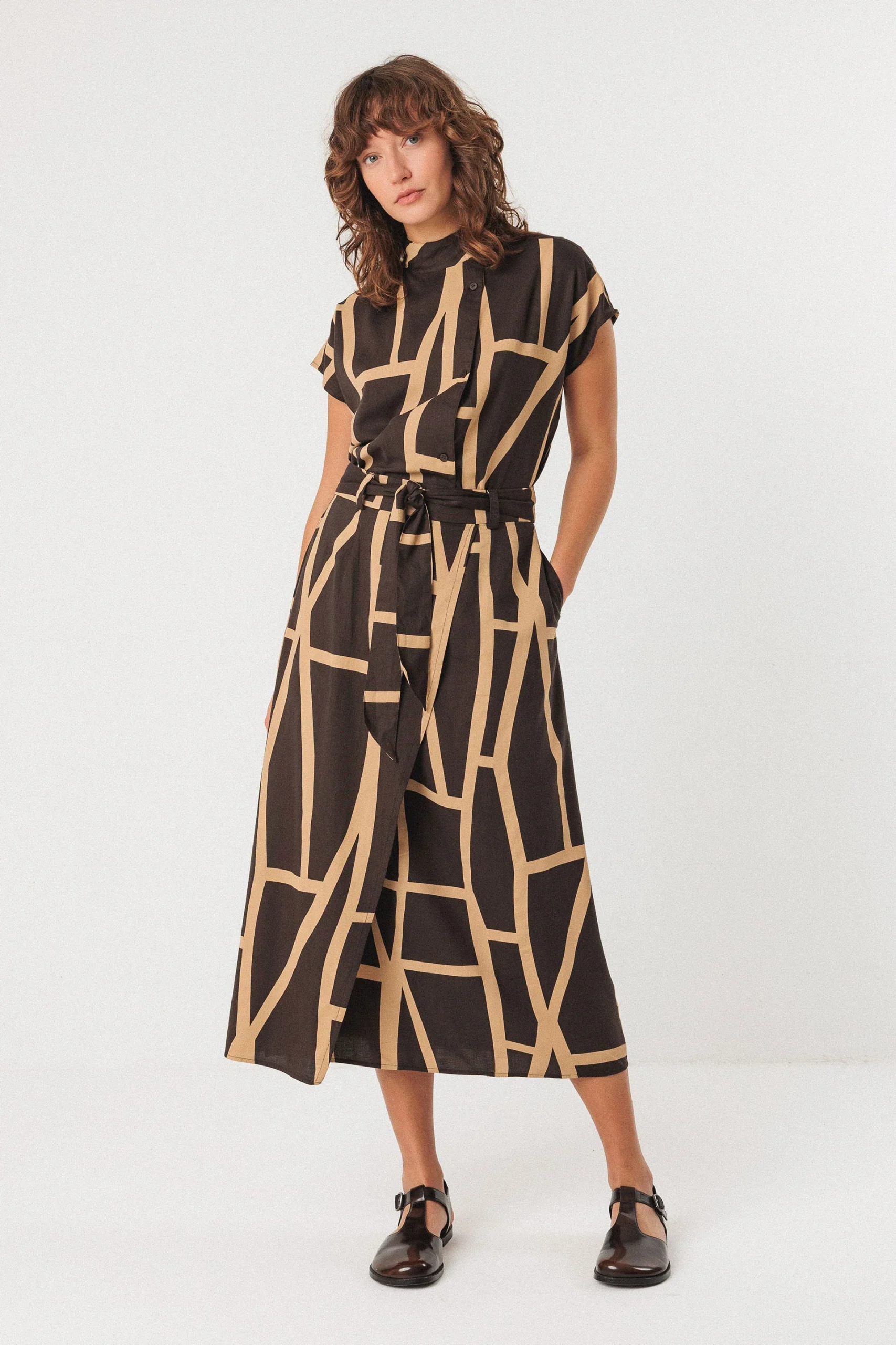 Cette jupe longue au motif kintsugi allie élégance naturelle et fluidité, avec une coupe ample et un tombé léger. Ses tons marron et beige apportent une touche chaleureuse et intemporelle à vos tenues.