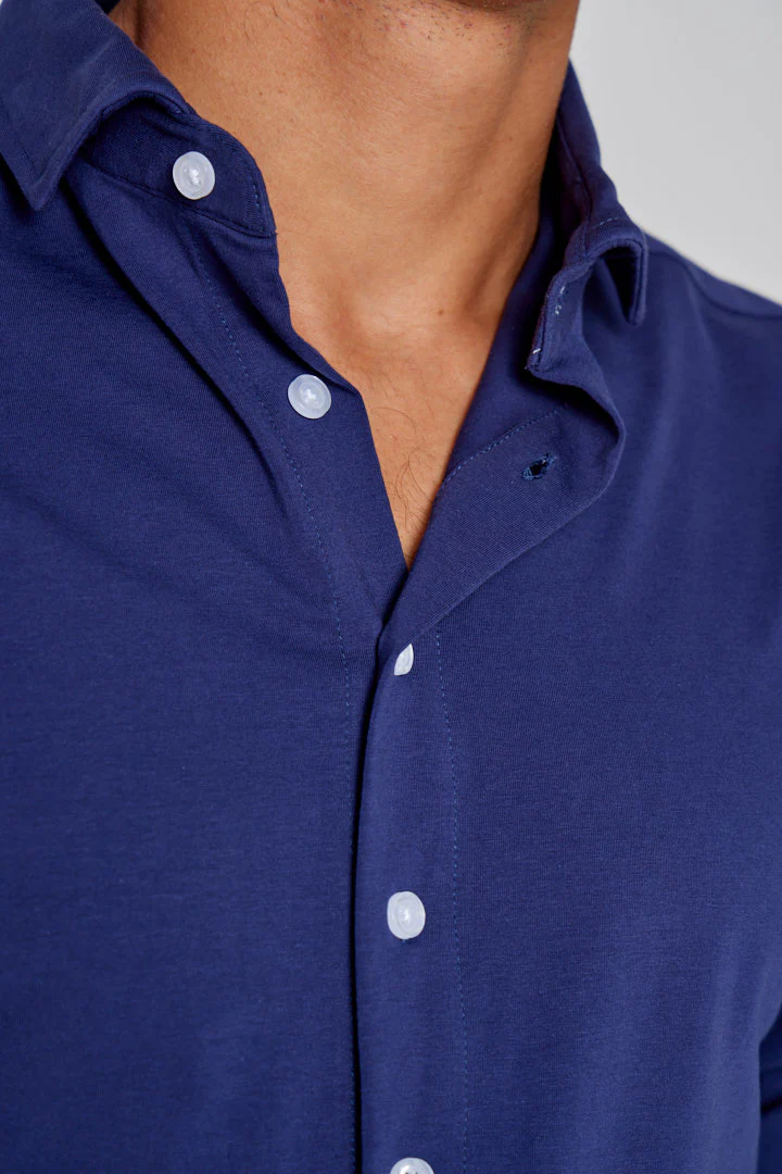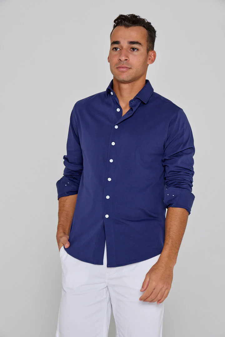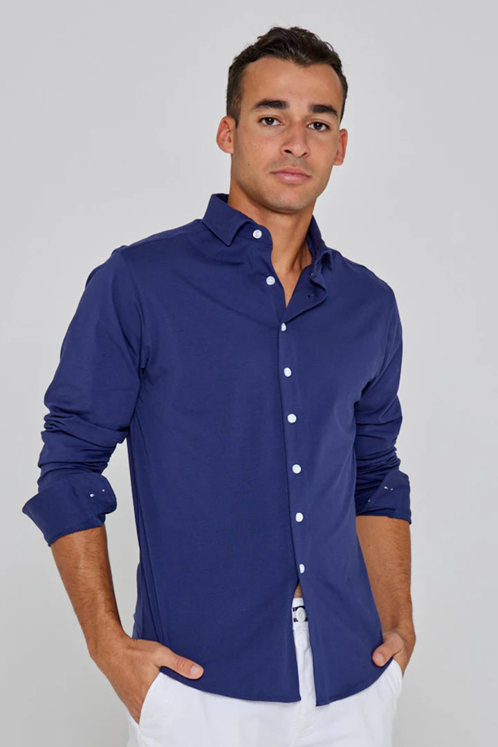 Kingston – Chemise Coton Jersey Élasthanne – Manches longues – Coupe droite – Homme – Bleu Marine
