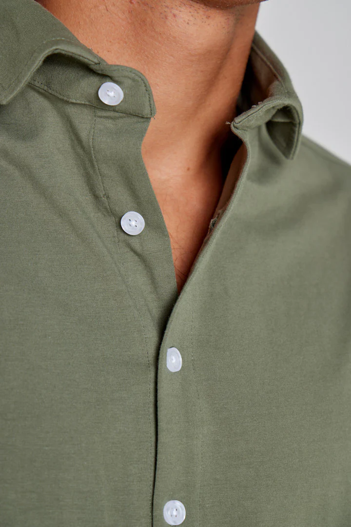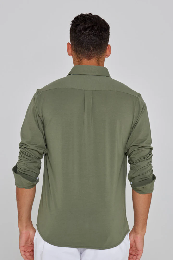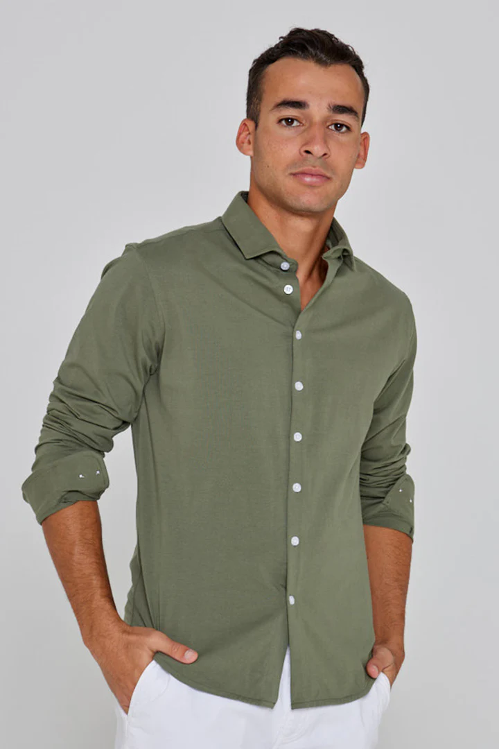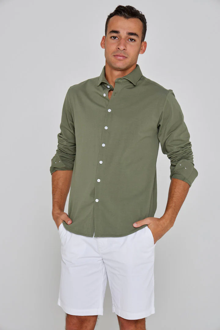 Kingston – Chemise Coton Jersey Élasthanne – Manches longues – Coupe droite – Homme – Kaki