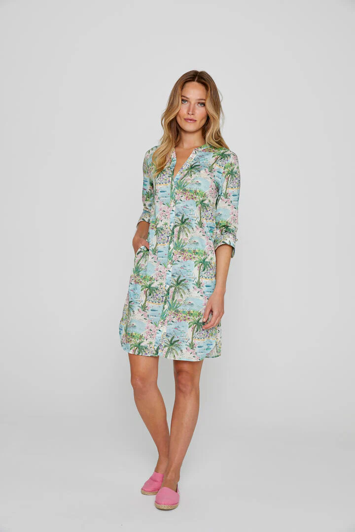 LAURALY – Robe Liberty Col Mao Manches 3/4 Coupe droite – Femme – Cape Vista 132B
