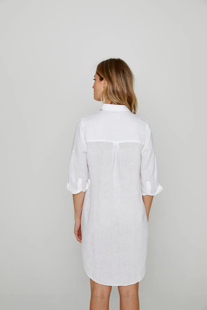 LAUREN – Tunique Lin Manches 3/4 Coupe évasée – Femme – Blanc
