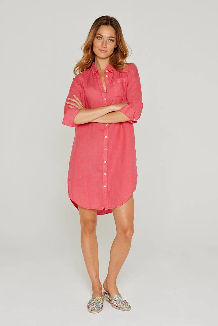 LAUREN – Tunique Lin Manches 3/4 Coupe évasée – Femme – Fraise