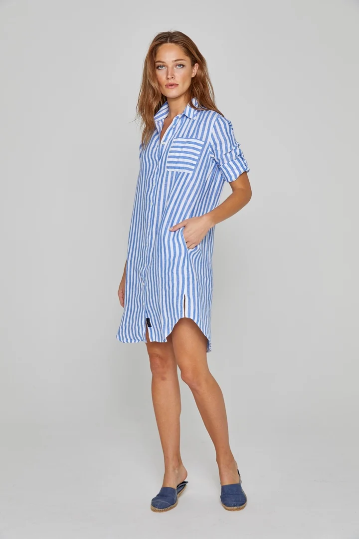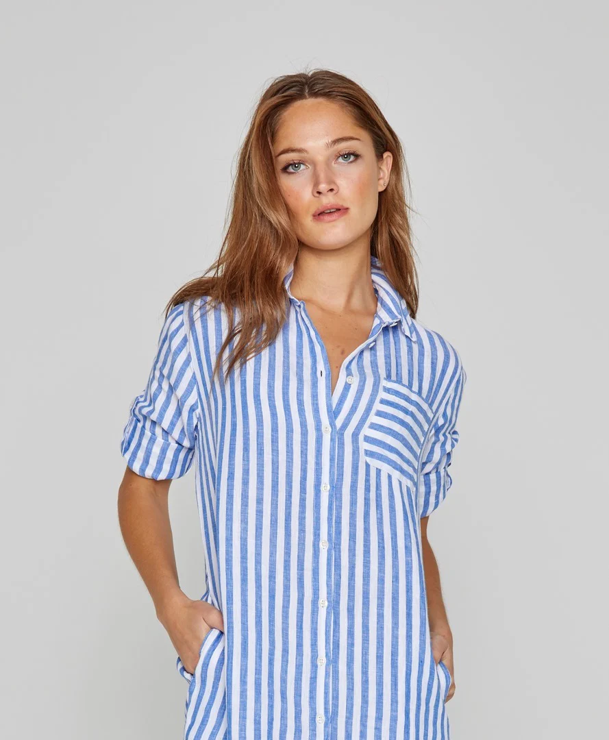 - Une invitation au voyage avec la tunique Keywest réalisée dans des rayures aux couleurs éclatantes.Confectionné en lin léger et naturellement respirant, ce modèle est idéal pour les températures les plus chaudes. Des plages du Cap-Ferret jusqu’aux îles de Key West , c’est l’incontournable tunique à porter ouverte sur un maillot de bain. Ceinturée à la taille, portée avec nos espadrilles, elle sera parfaite pour les soirées d’été décontractées.