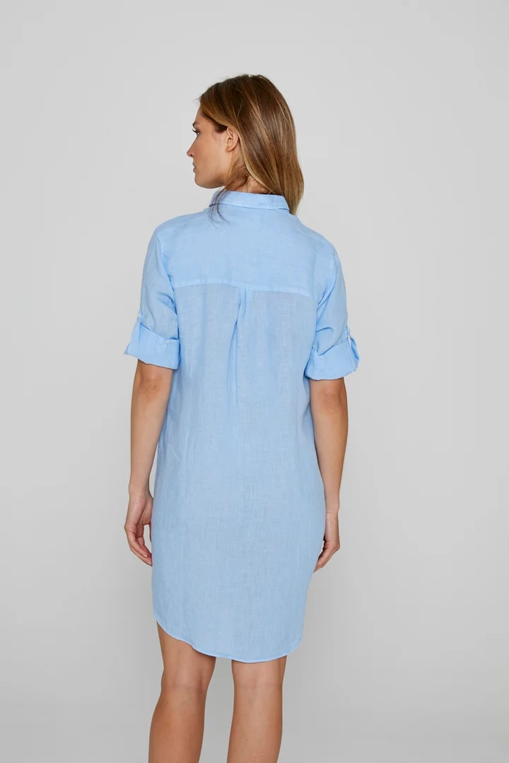 LAUREN – Tunique Lin Manches 3/4 Coupe évasée – Femme – Bleu ciel