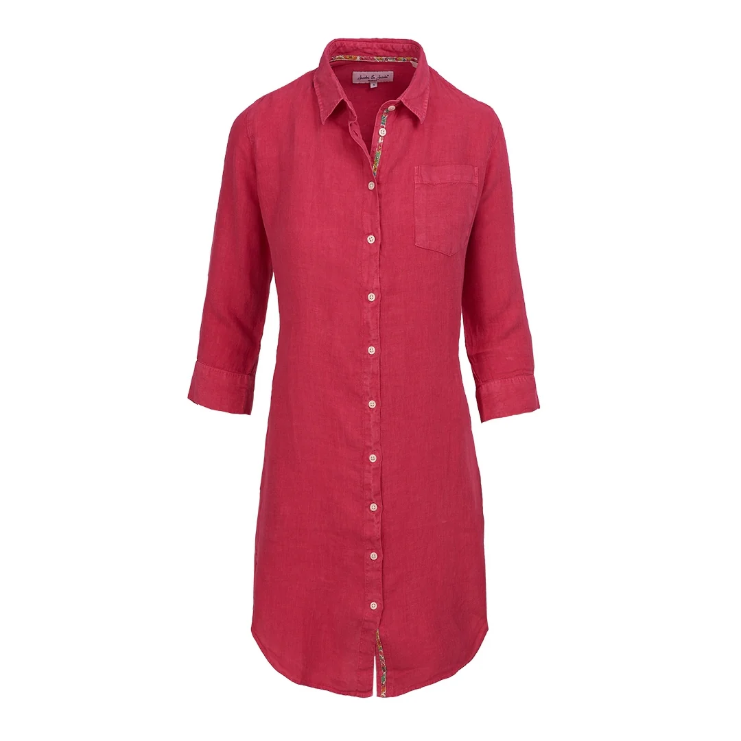 LAURENL – Tunique Lin Opp.Liberty Manches 3/4 Coupe évasée – Femme – Fraise/Margaret Annie 037B