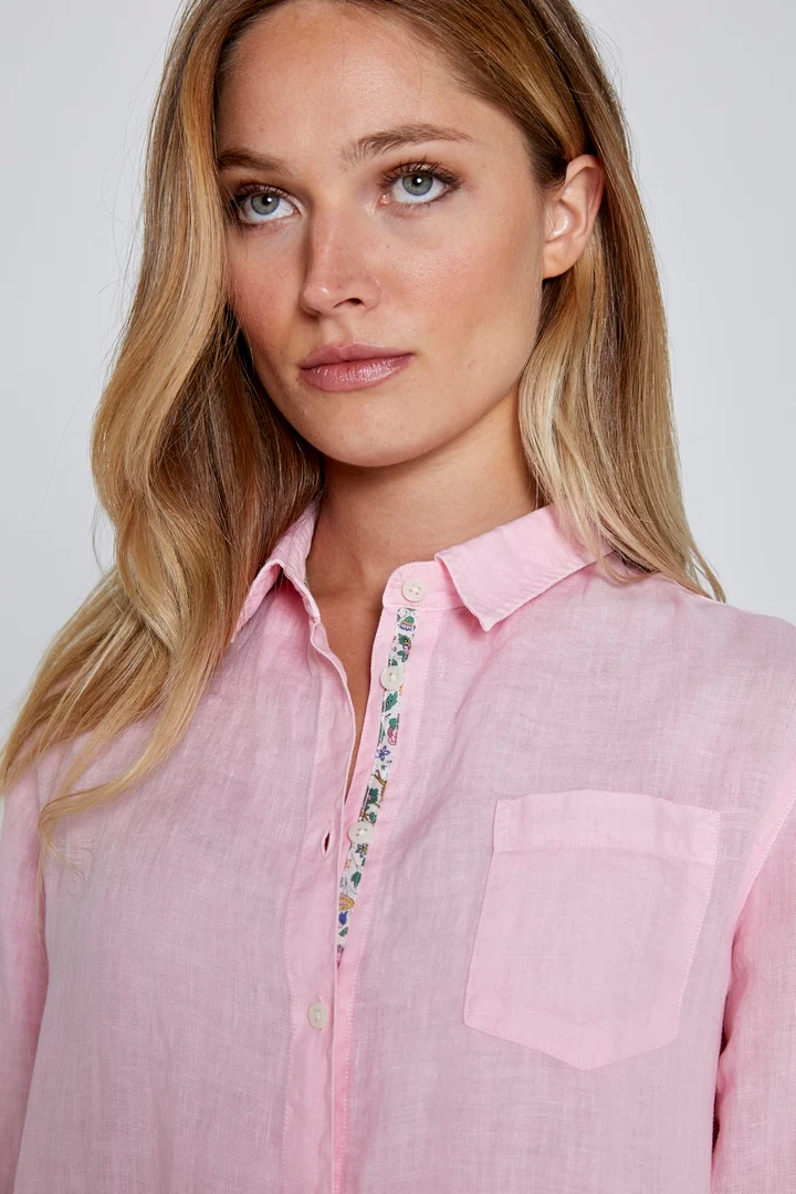 LAURENL – Tunique Lin Opp.Liberty Manches 3/4 Coupe évasée – Femme – Rose/Palmeira 035A