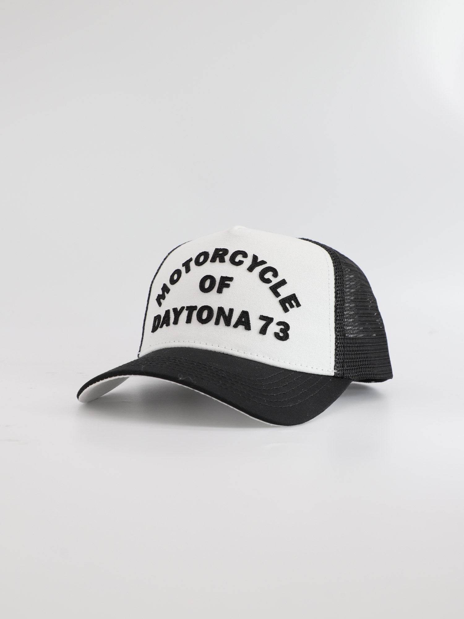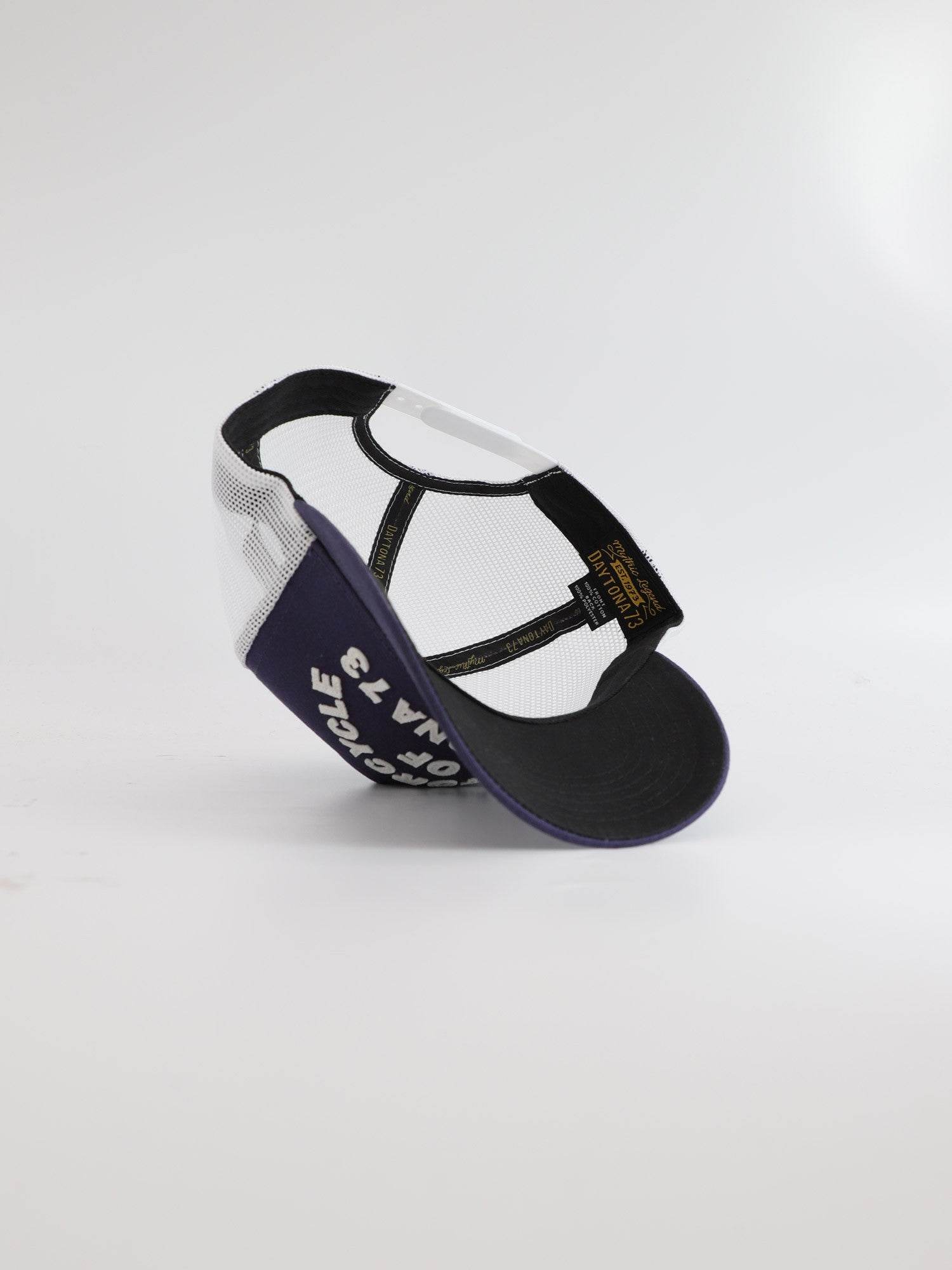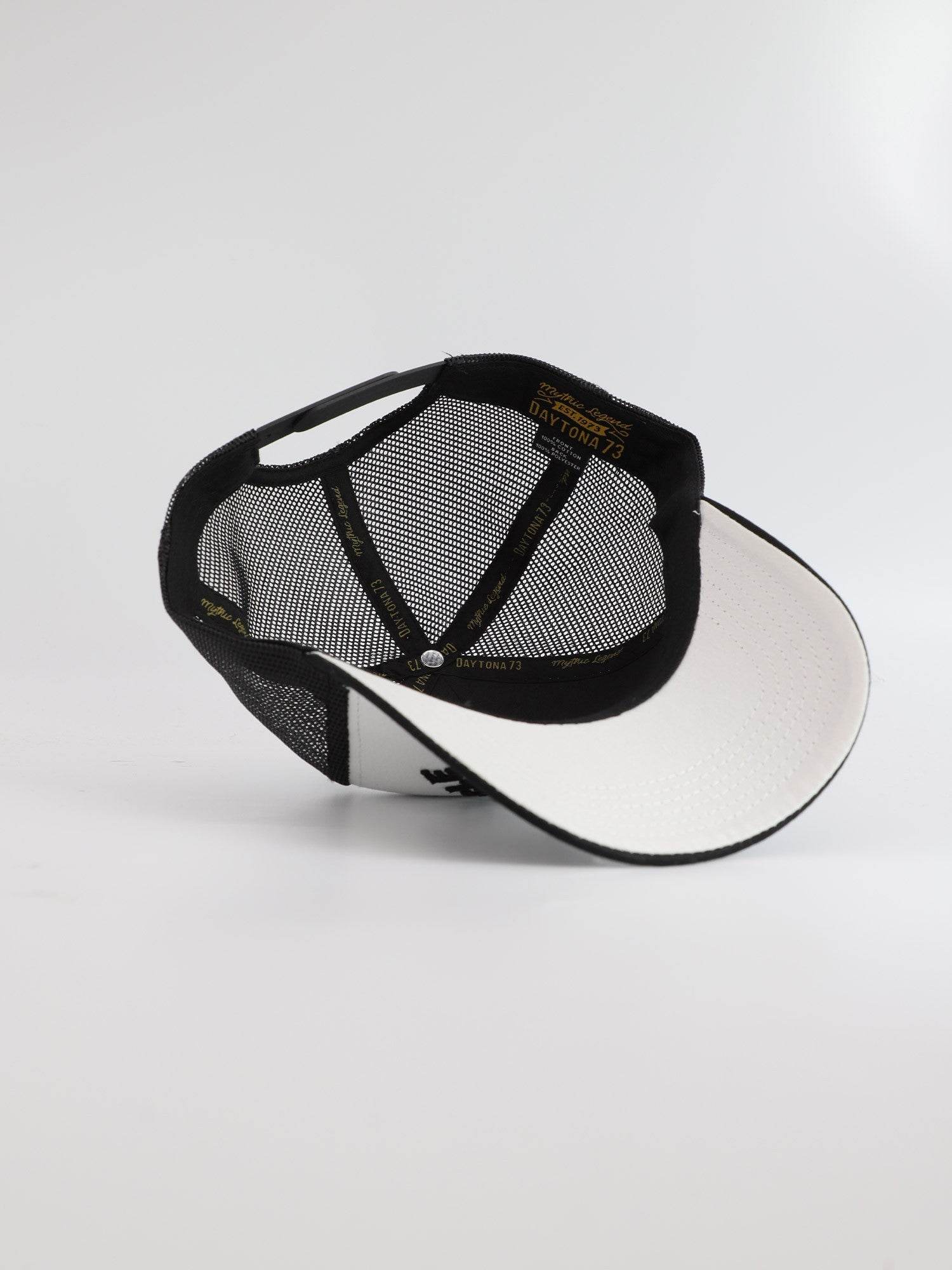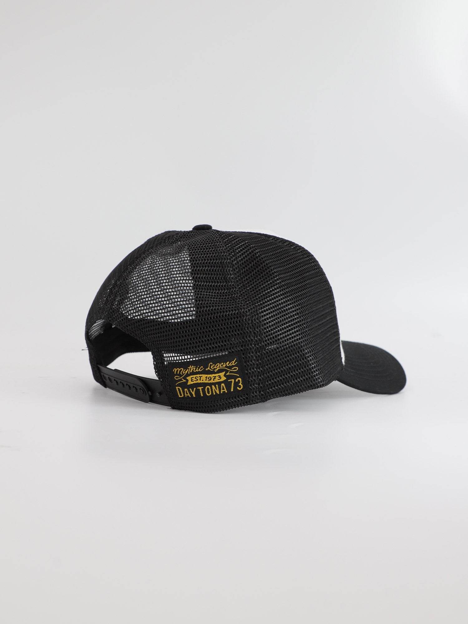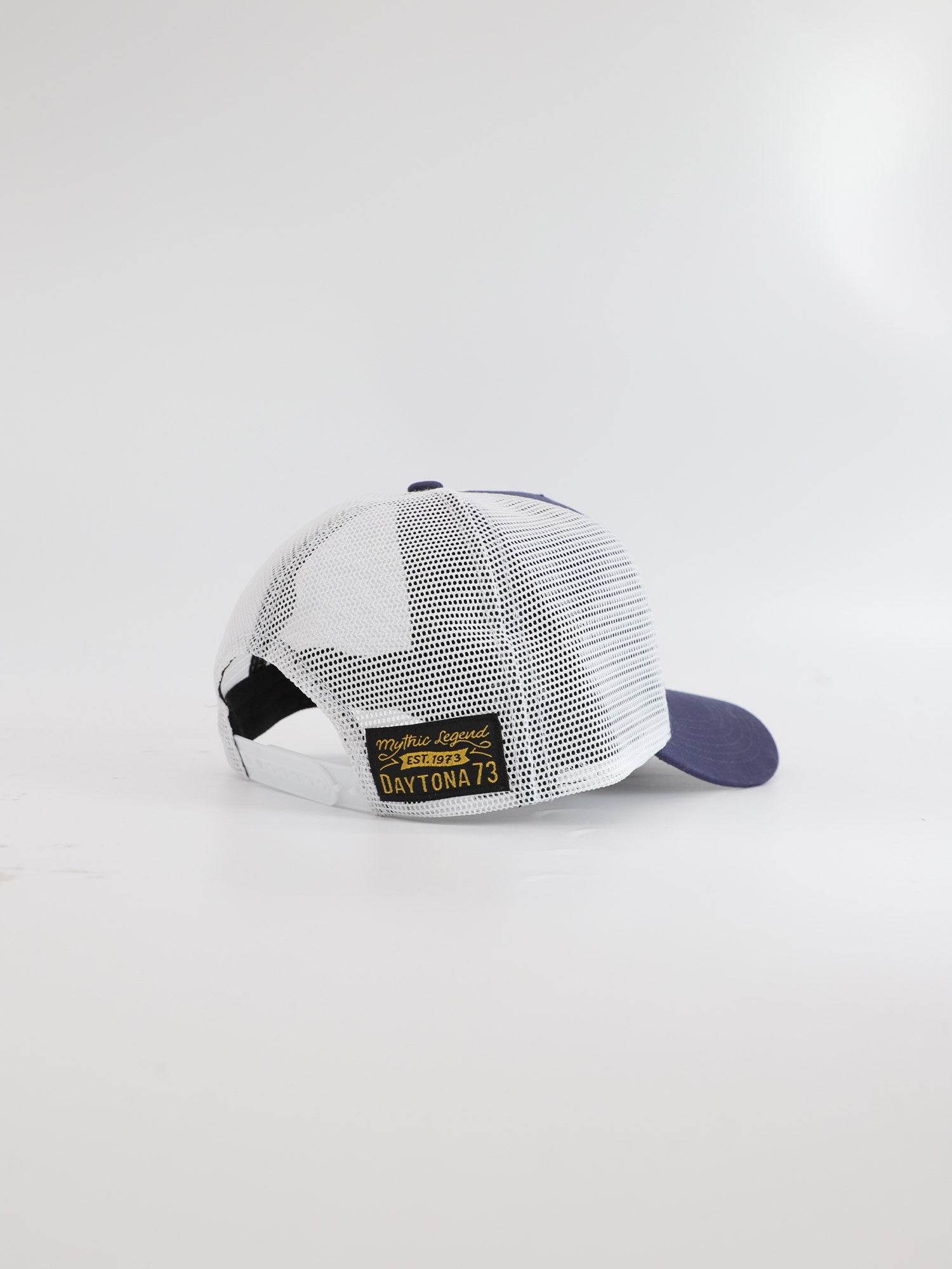 Casquette coupe trucker avec filet en polyester et ses lettres surpiquées en feutrine.