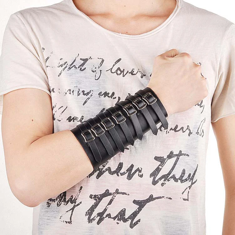 Découvrez ce Bracelet en Cuir proche de la Manchette entre le style punk et post-apo.