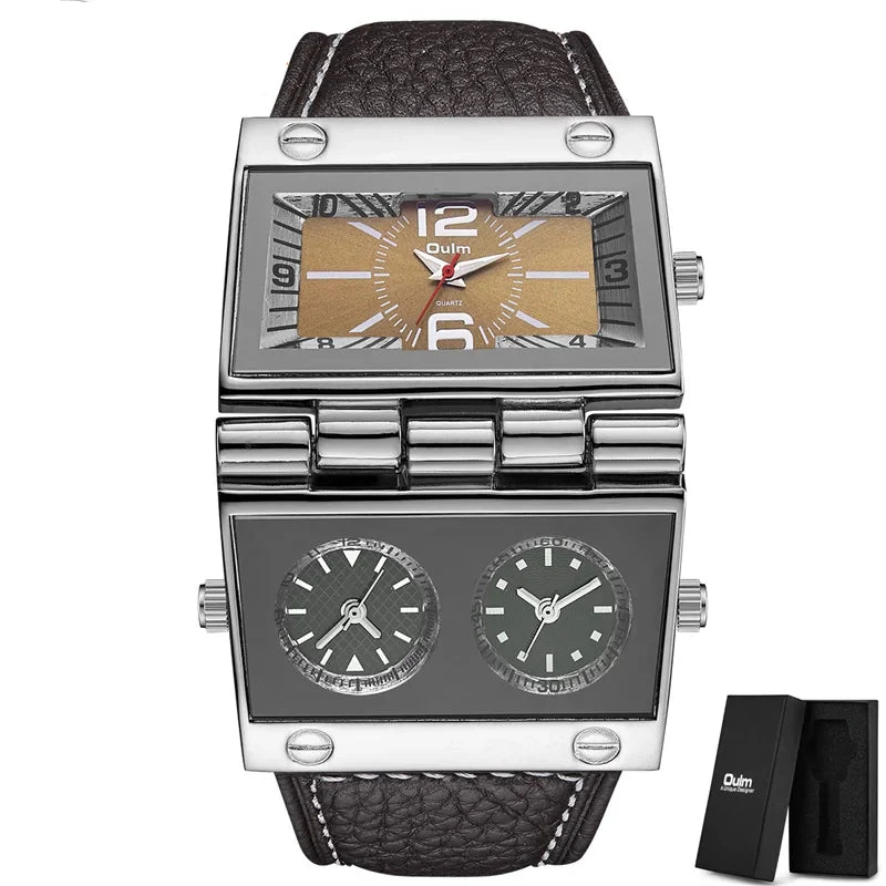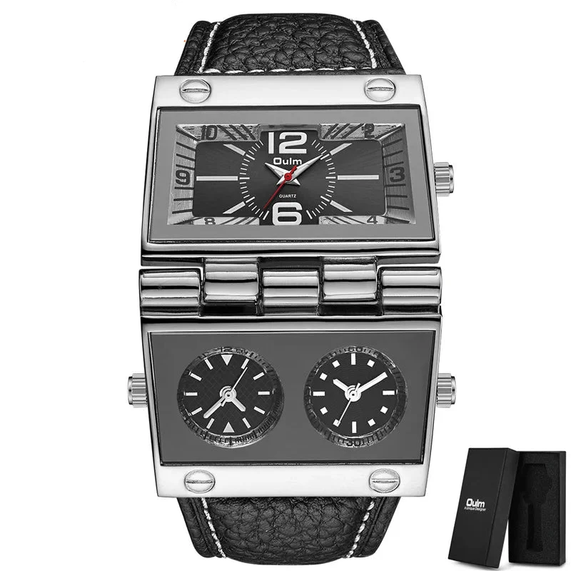 Une Large Montre Bracelet pour Homme faite de Cuir et d’acier.