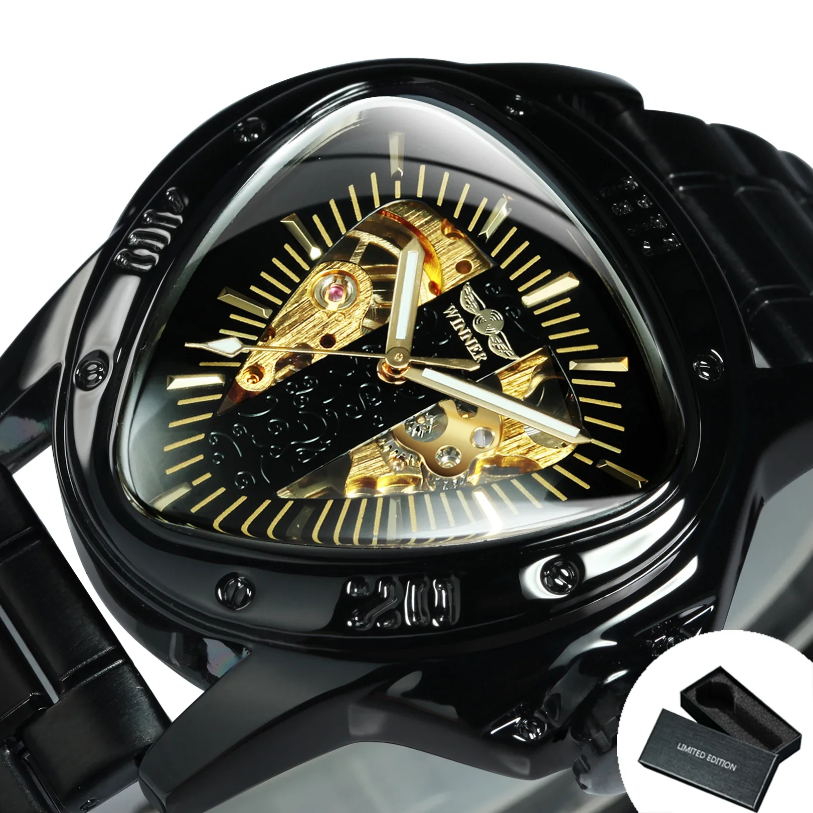- Une montre mécanique au design triangulaire original et innovant.