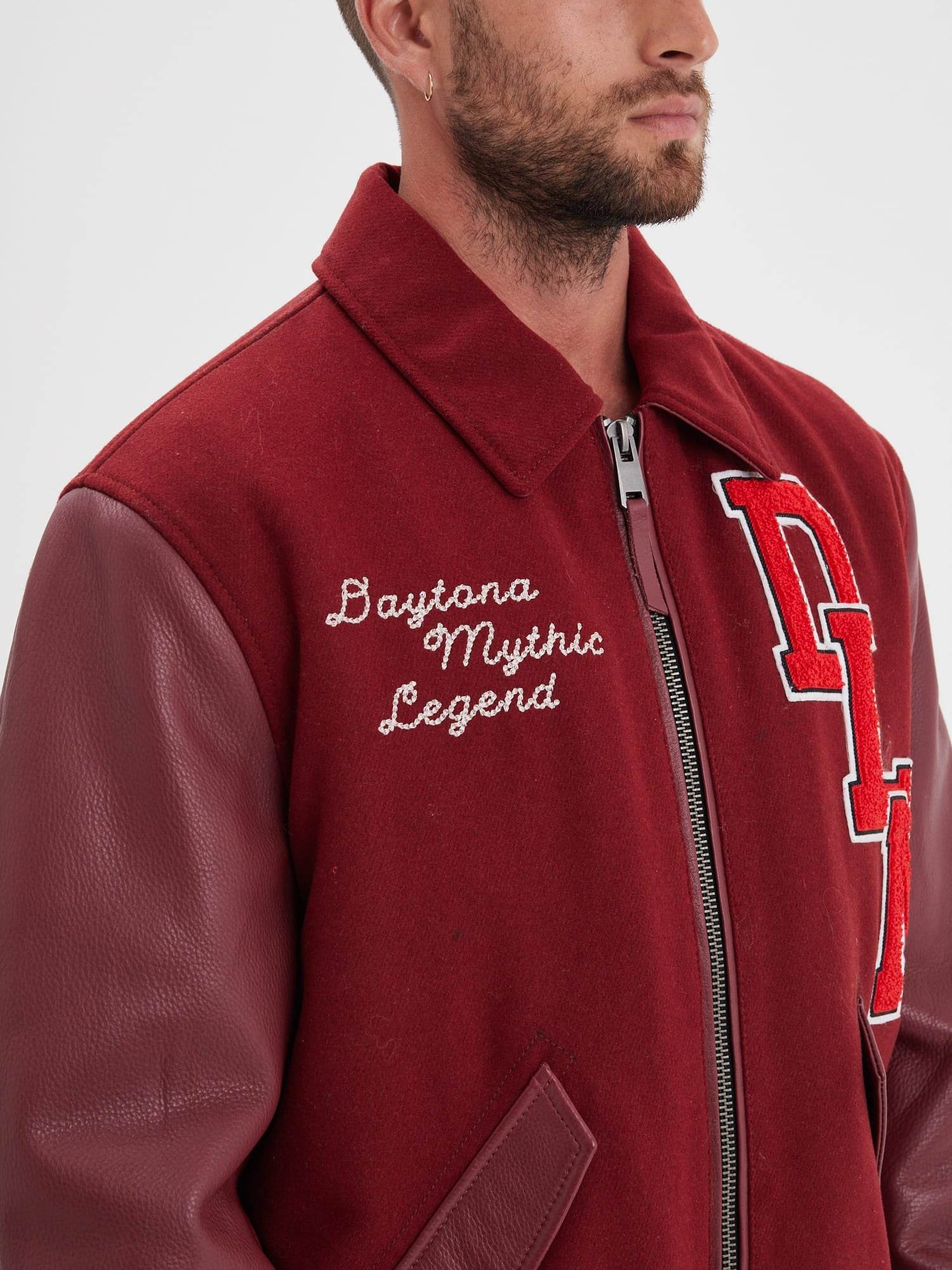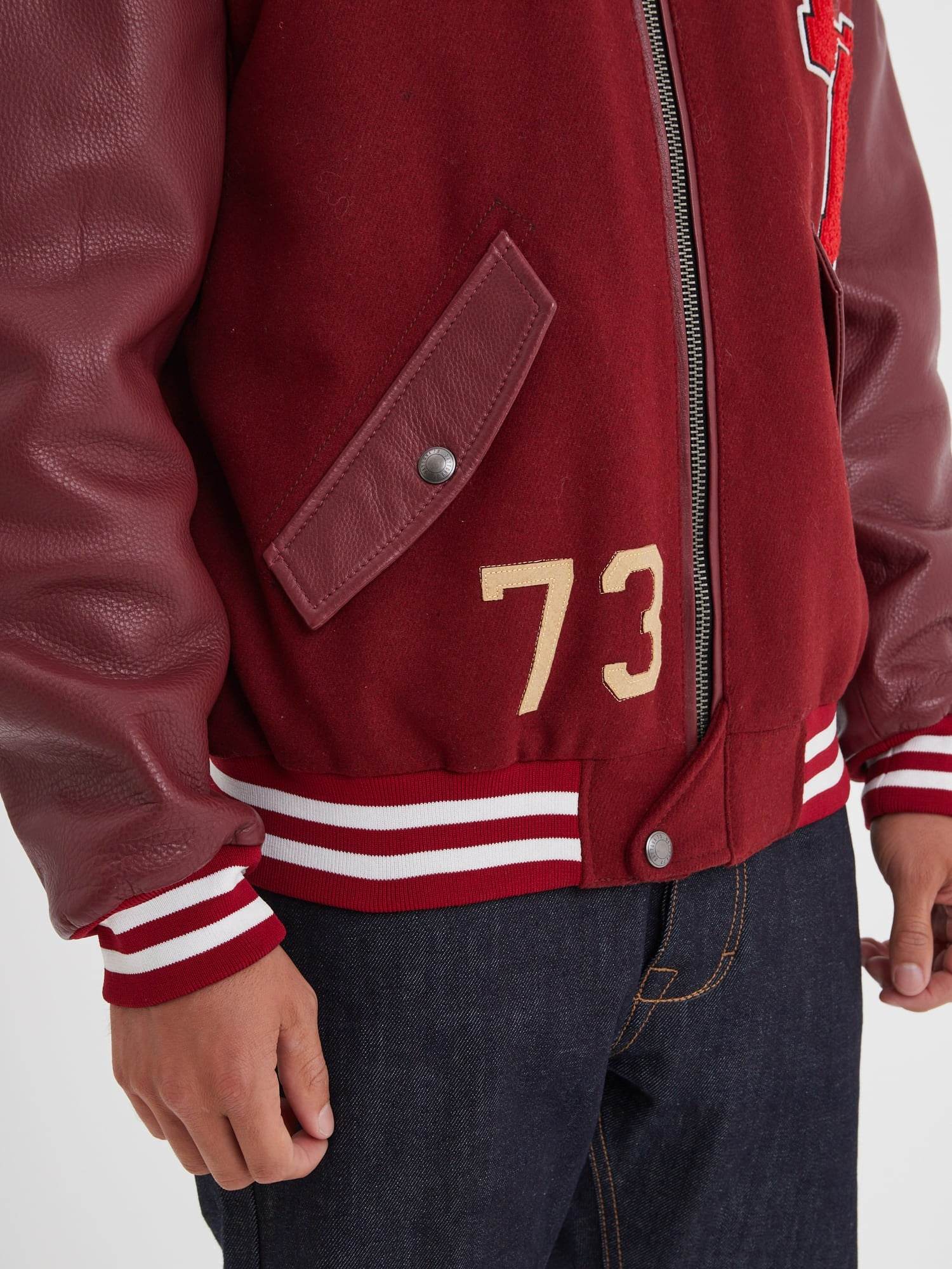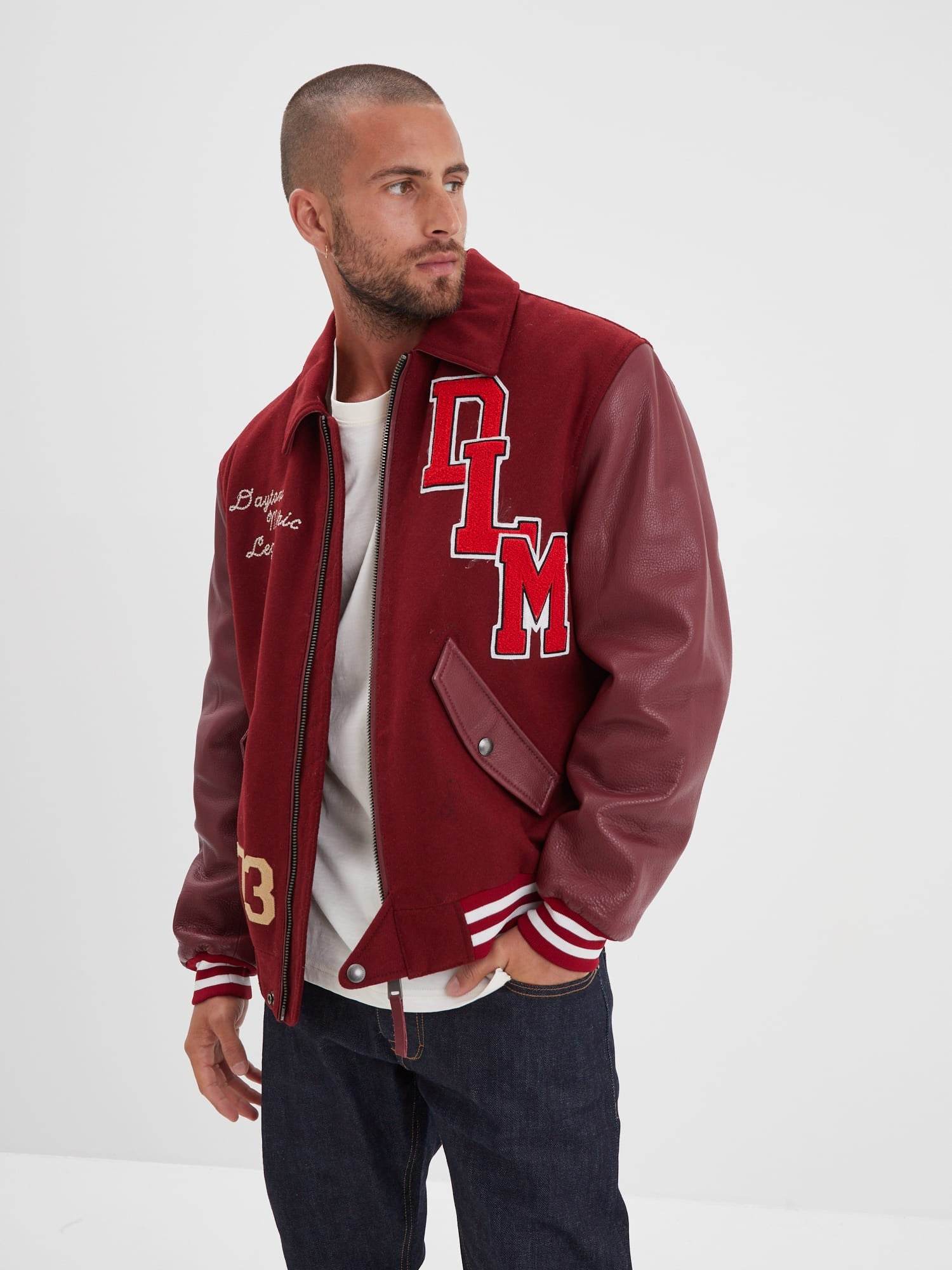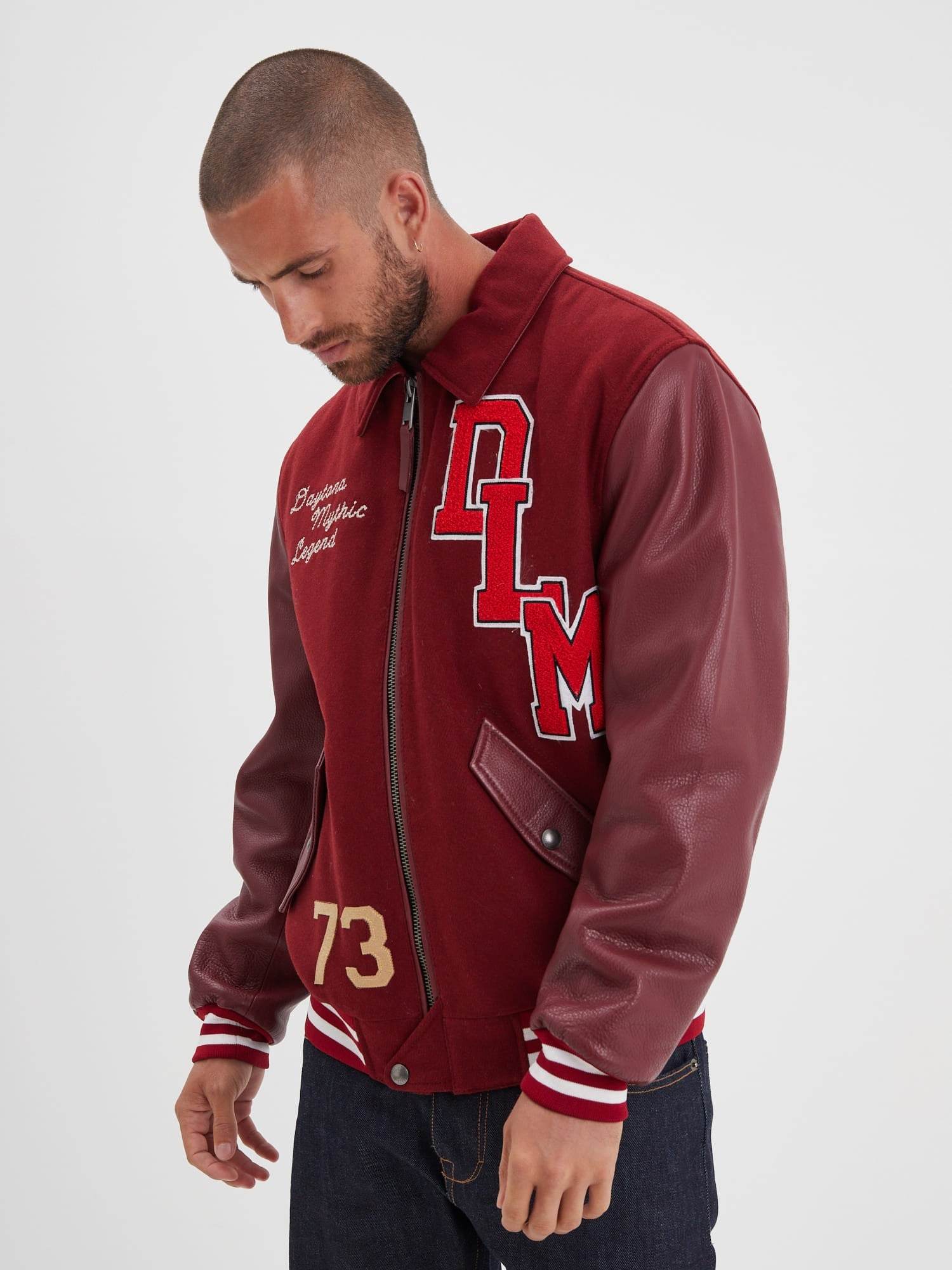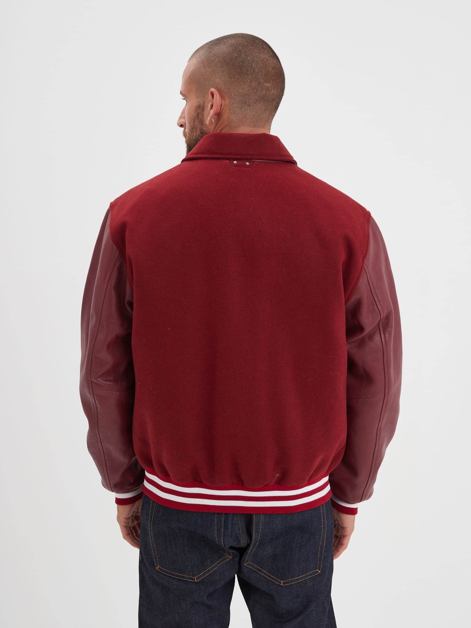 L’emblématique blouson universitaire revient chaque saison comme un incontournable de la mode. Ce blouson bi-matière (cuir + coton/acrylique) s’inspire des années 70 avec un profil sportif et vintage.