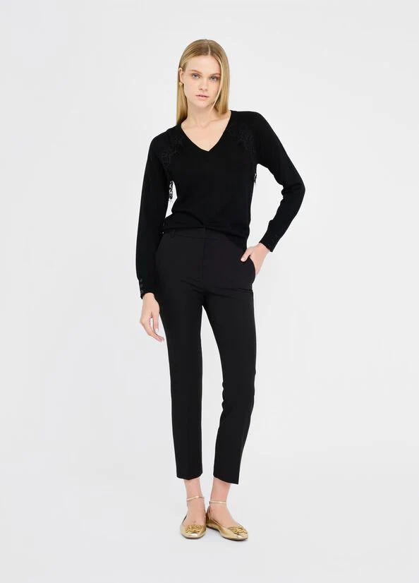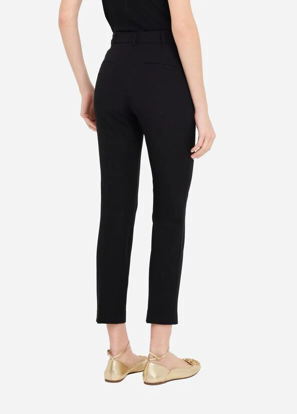 Pantalon cigarette noir en tissu technique stretch Poches pratiques Poches arrière passepoilées Pli marqué