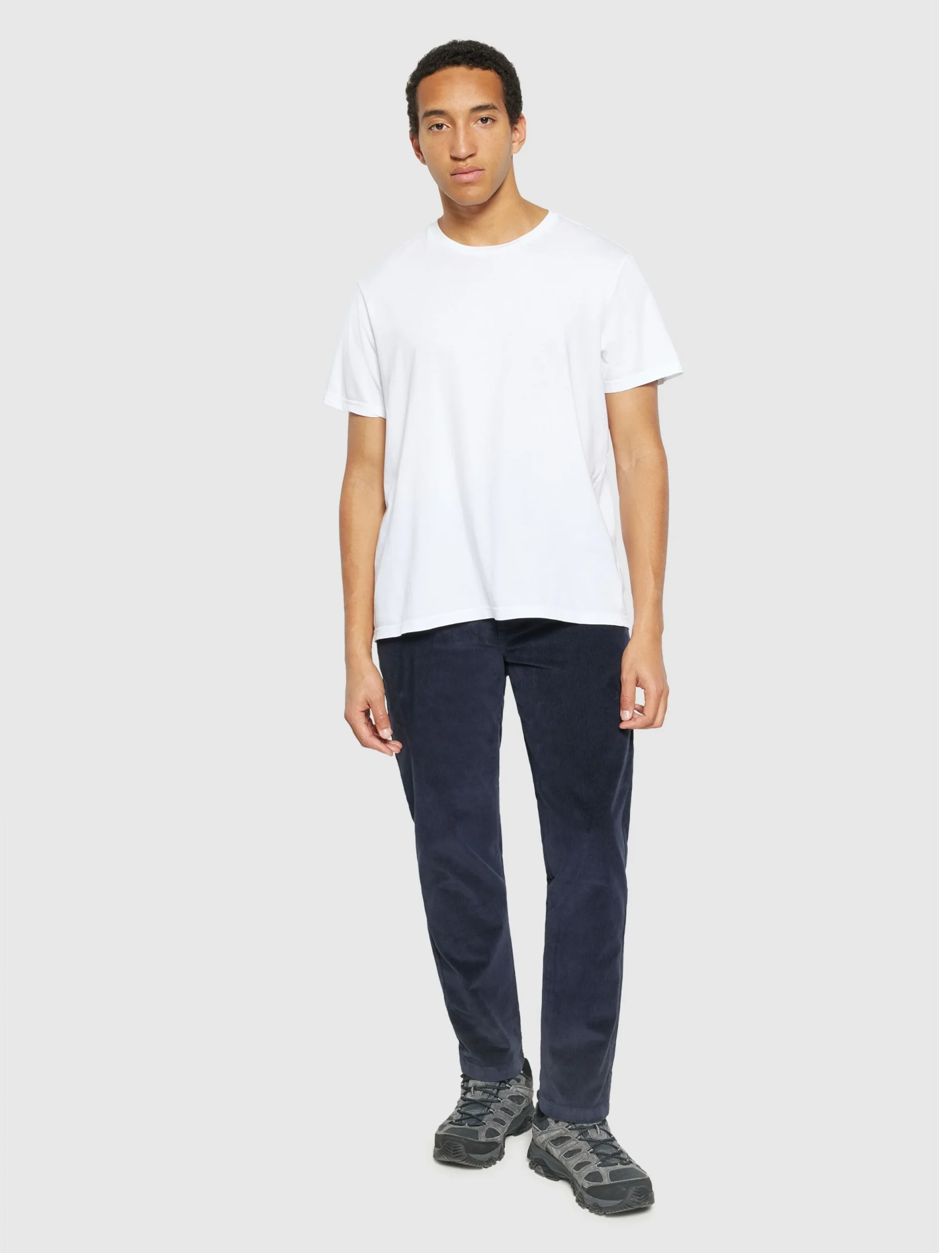 Ce pantalon chino homme en velours de coton bio a une coupe droite classique. Il est parfait pour les températures fraiches et son coloris bleu foncé en fait un basique incontournable !