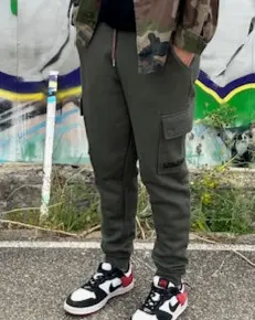 Ce Pantalon jogging cargo est molletonné. Il comprend des multipoches dont une poche jambe de chaque coté avec fermeture scratch ainsi qu’une poche derrière.