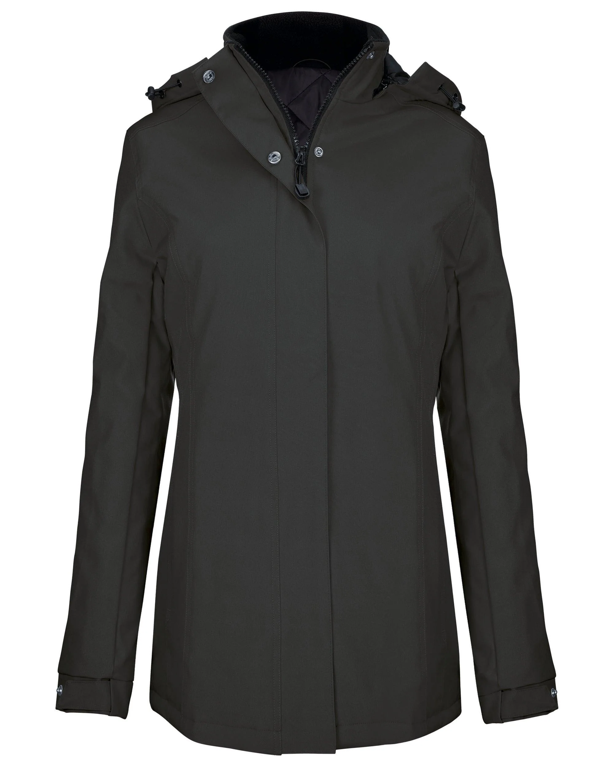 Extérieur : 100% polyester Oxford. Intérieur : polyester matelassé. Fermeture zippée avec patte et pressions invisibles. 2 poches extérieures zippées. 1 poche intérieure. Capuche amovible. Col doublé polaire. Zip pour personnalisation.