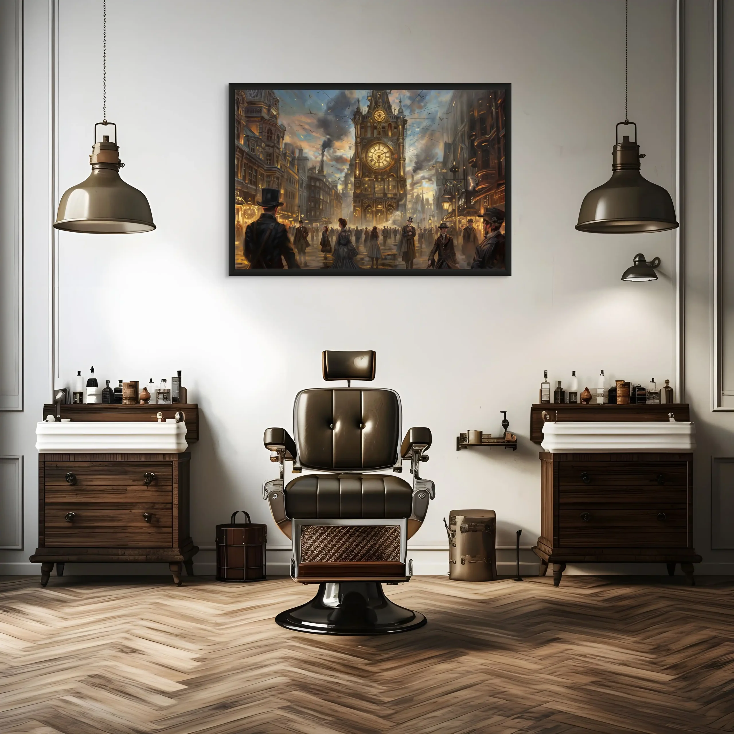 Plongez dans un univers où l’histoire rencontre la fantaisie avec notre Tableau Steampunk. Cette œuvre captivante, alliant technologie rétro et esthétique victorienne, transforme votre espace en une exposition murale intemporelle. Le tableau présente une scène animée d’une ville d’époque agrémentée d’engrenages et de mécanismes complexes, soulignant le contraste saisissant entre le noir et blanc et les teintes chaleureuses, pour une décoration murale qui attire le regard.