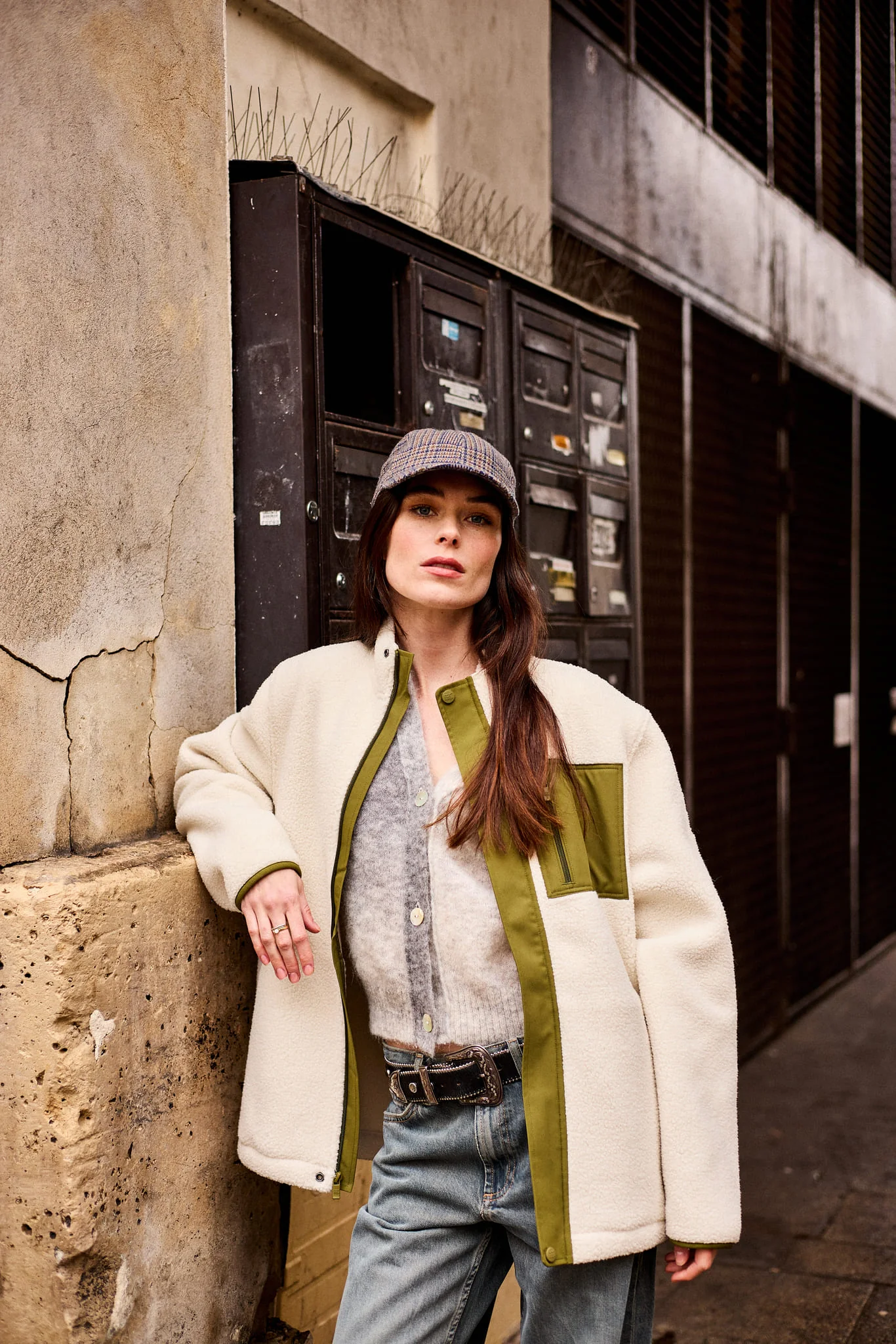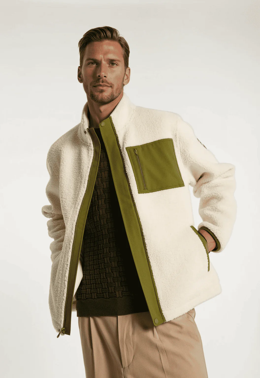 Polaire en polyester recyclé · crème et vert olive