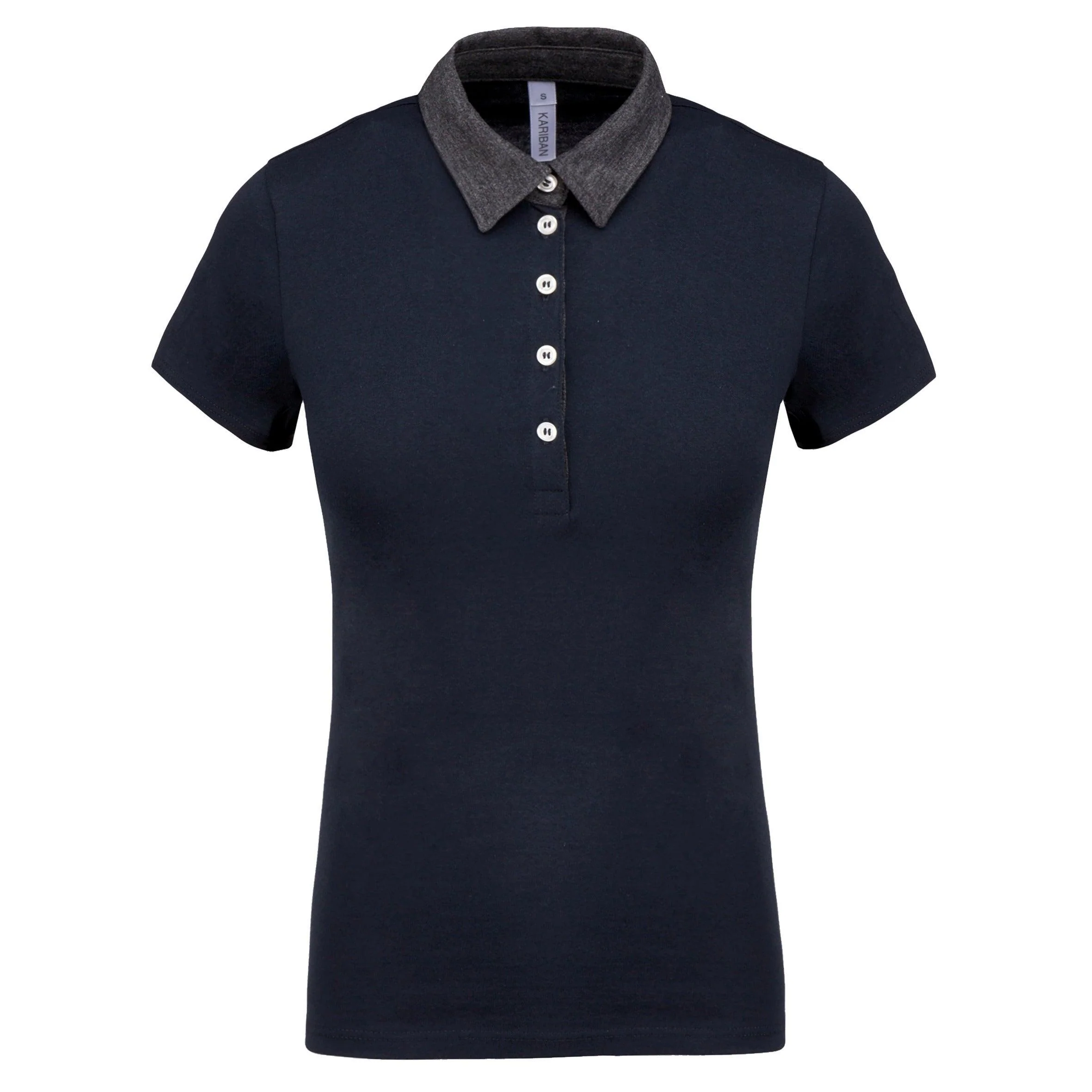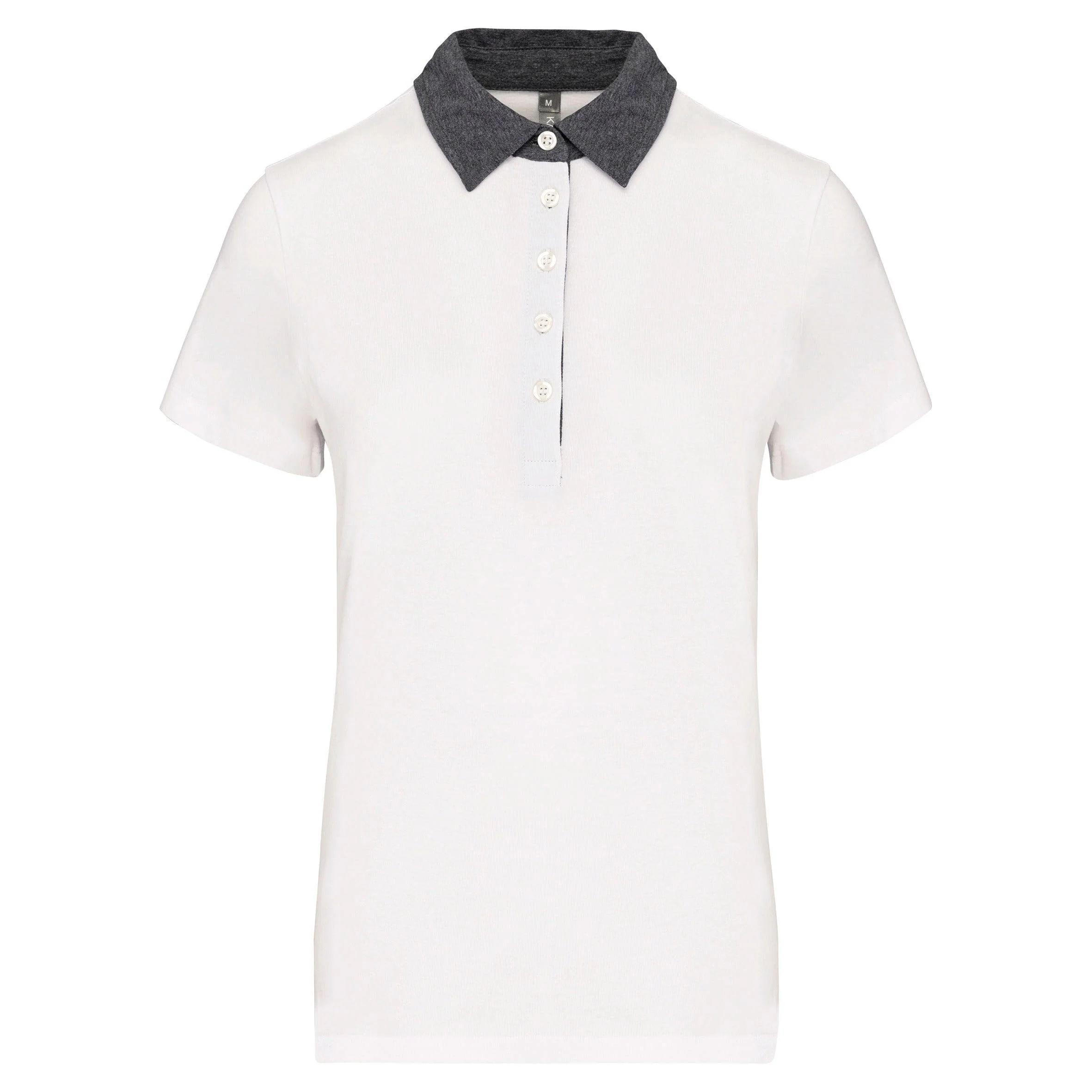 100% coton (65% polyester / 35% coton pour coloris chiné). Maille jersey en coton peigné avec lavage aux enzymes. Col chemise et intérieur patte contrastés avec 5 boutons blanc nacré. Finition double aiguille bas de manches et bas de vêtement.