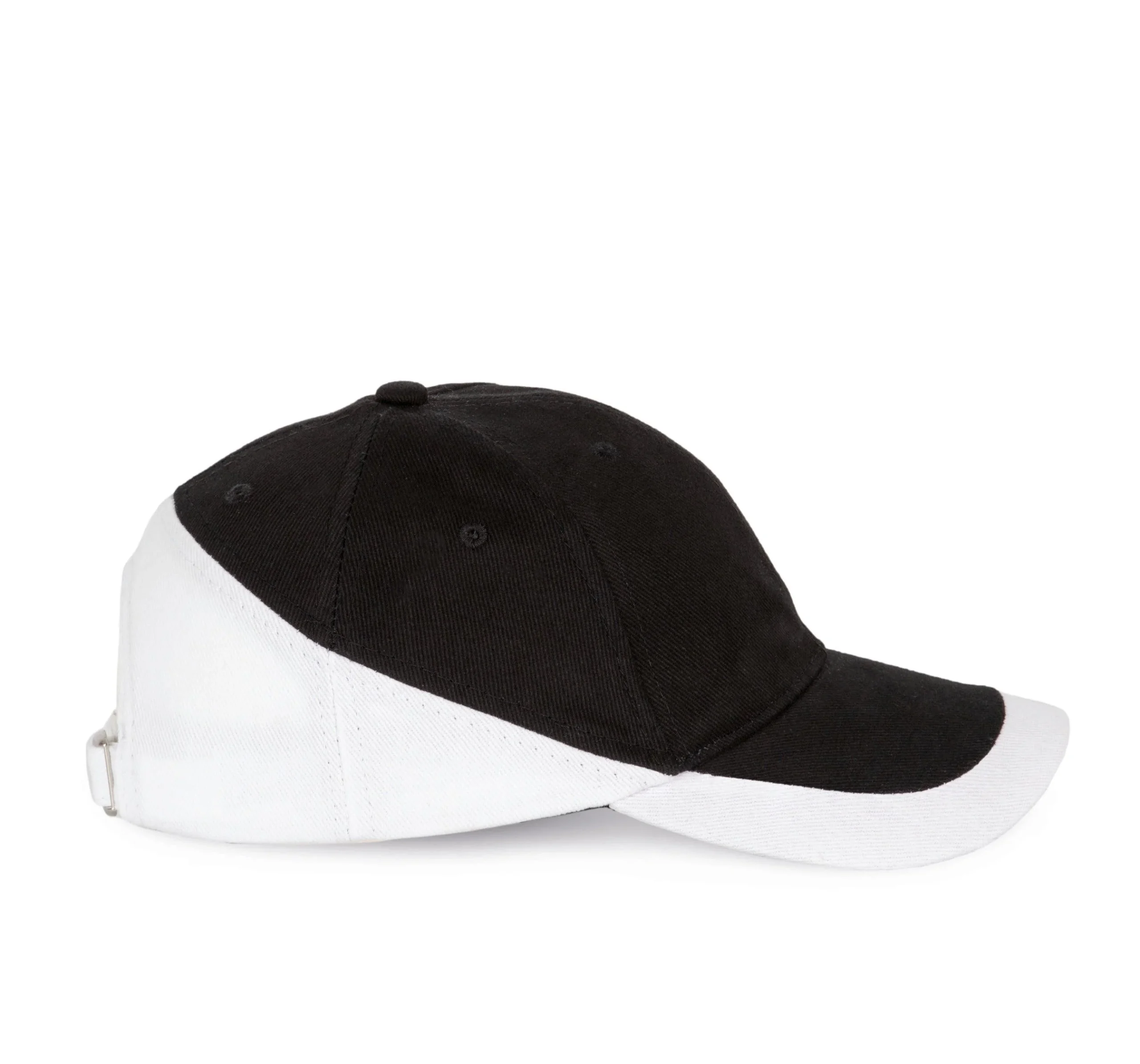 100% coton sergé brossé épais. 6 œillets d’aération. Fermeture arrière réglable par boucle métallique + passant couleur argent mat.