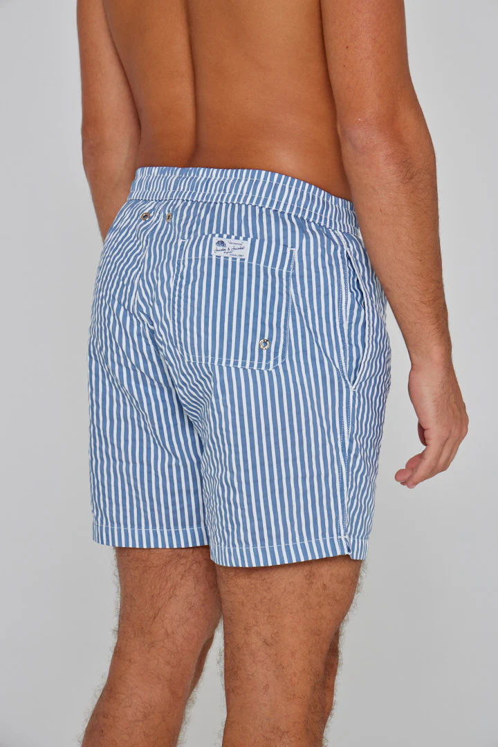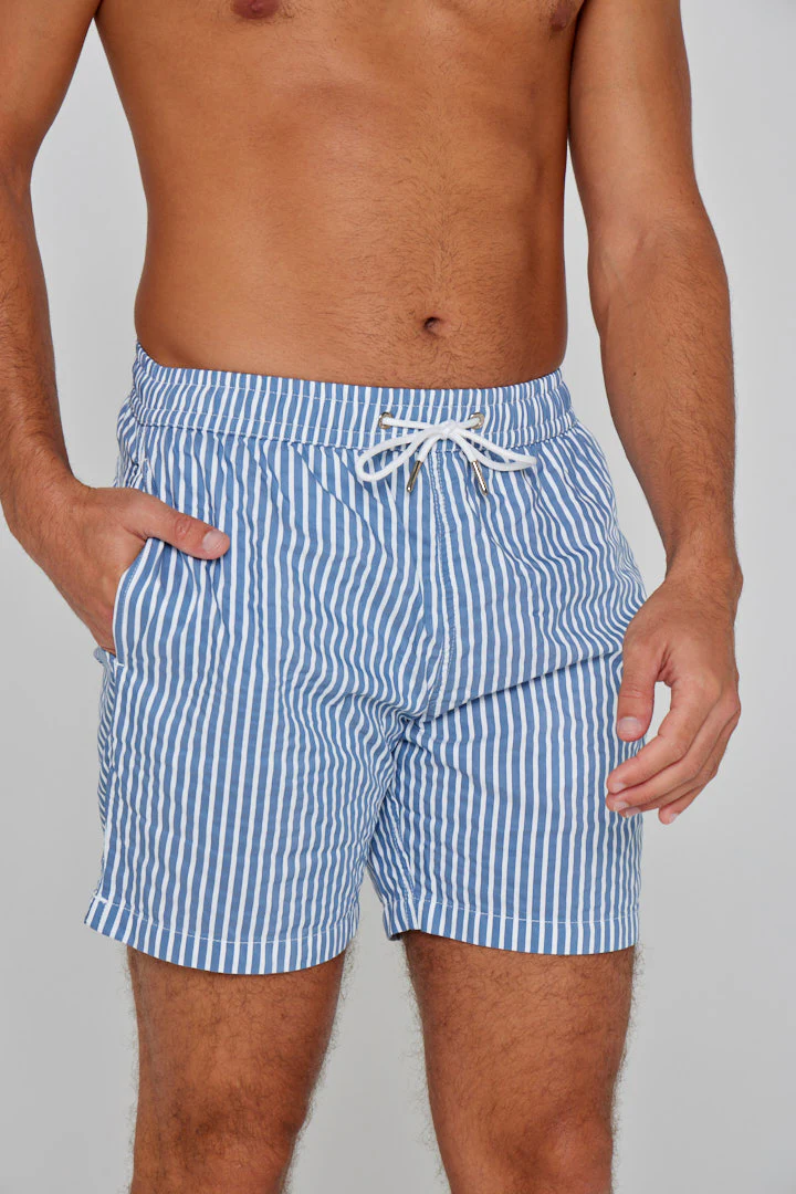 • Le short de bain RICHMOND est un essentiel élégant. Confectionné dans un tissu rayé ultra léger, il séduit par sa sobriété, sa coupe moderne et ses finitions soignées. Un modèle intemporel, facile à porter au quotidien, été après été.