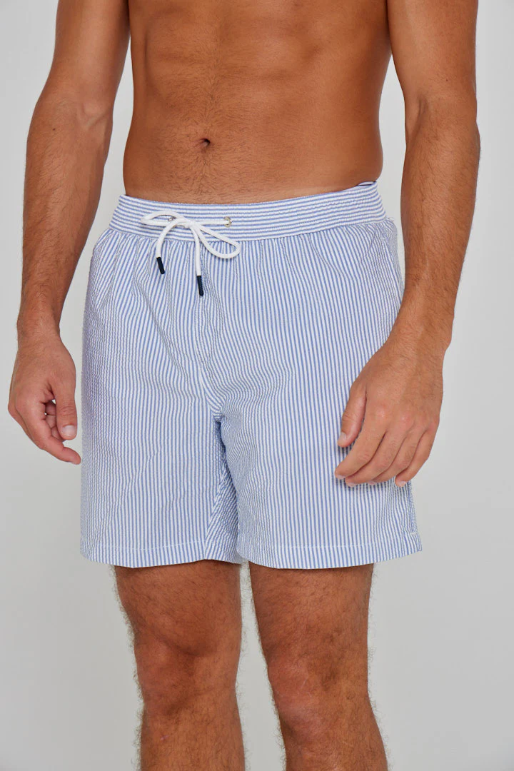 RIVA – Maillot De Bain Seersucker Rayures Coupe Droite – Homme – Bleu Ciel
