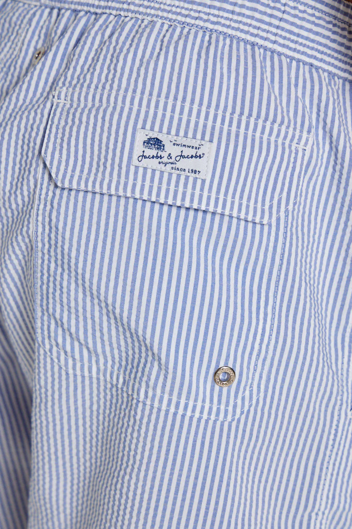 Le short de bain Riva est confectionné dans un tissu seersucker à rayures, à la texture légère et subtilement gaufrée.
