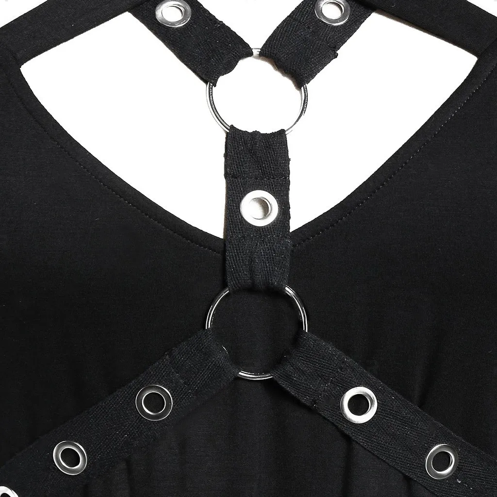 Une touche gothique irrésistible Découvrez cette magnifique robe à épaules dénudées gothique, une pièce incontournable pour toute garde-robe alternative. Son design élégant et mystérieux, accentué par des manches longues et des bretelles croisées, est parfait pour celles qui cherchent à ajouter une touche de glamour sombre à leur style. La dentelle délicate qui orne l’ourlet […]