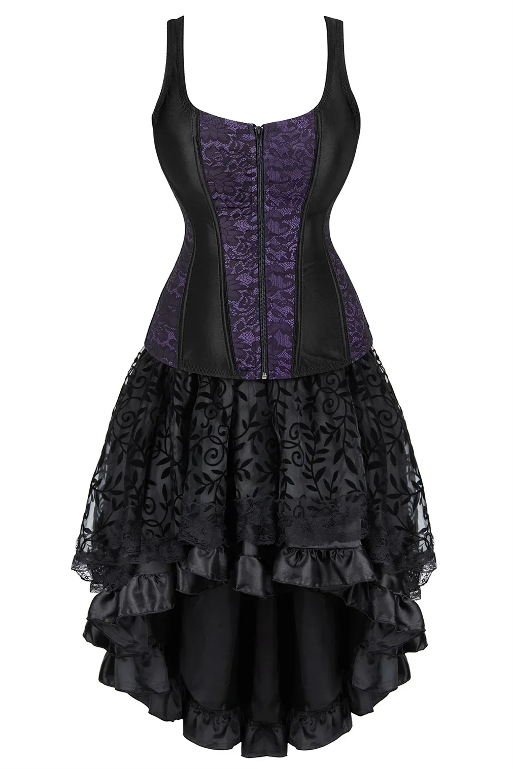 Adopter une allure gothique & romantique proche du burlesque. Sublimez votre décolleté de dentelle et affinez les courbes de vos hanches avec la partie bustier noir ajustable.