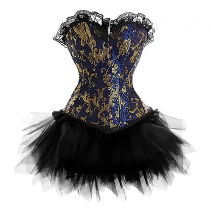 Entre la tenue burlesque et cabaret, cette Robe avec son Tutu à volants et son Corset attirera l’attention.