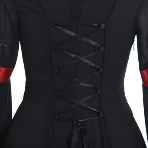 Type : Robe médiévale et féerique Sexe : Femme Couleur : Noir ou bleu Composition : Polyester Polyester : matière durable, résistante et facile à laver et sécher. Mélange de raffinement, romantisme et fantaisie Décolleté rond et manches ornés de bordures dorées Ajustée à la taille, évasée à partir des hanches Longueur : chevilles Taille […]