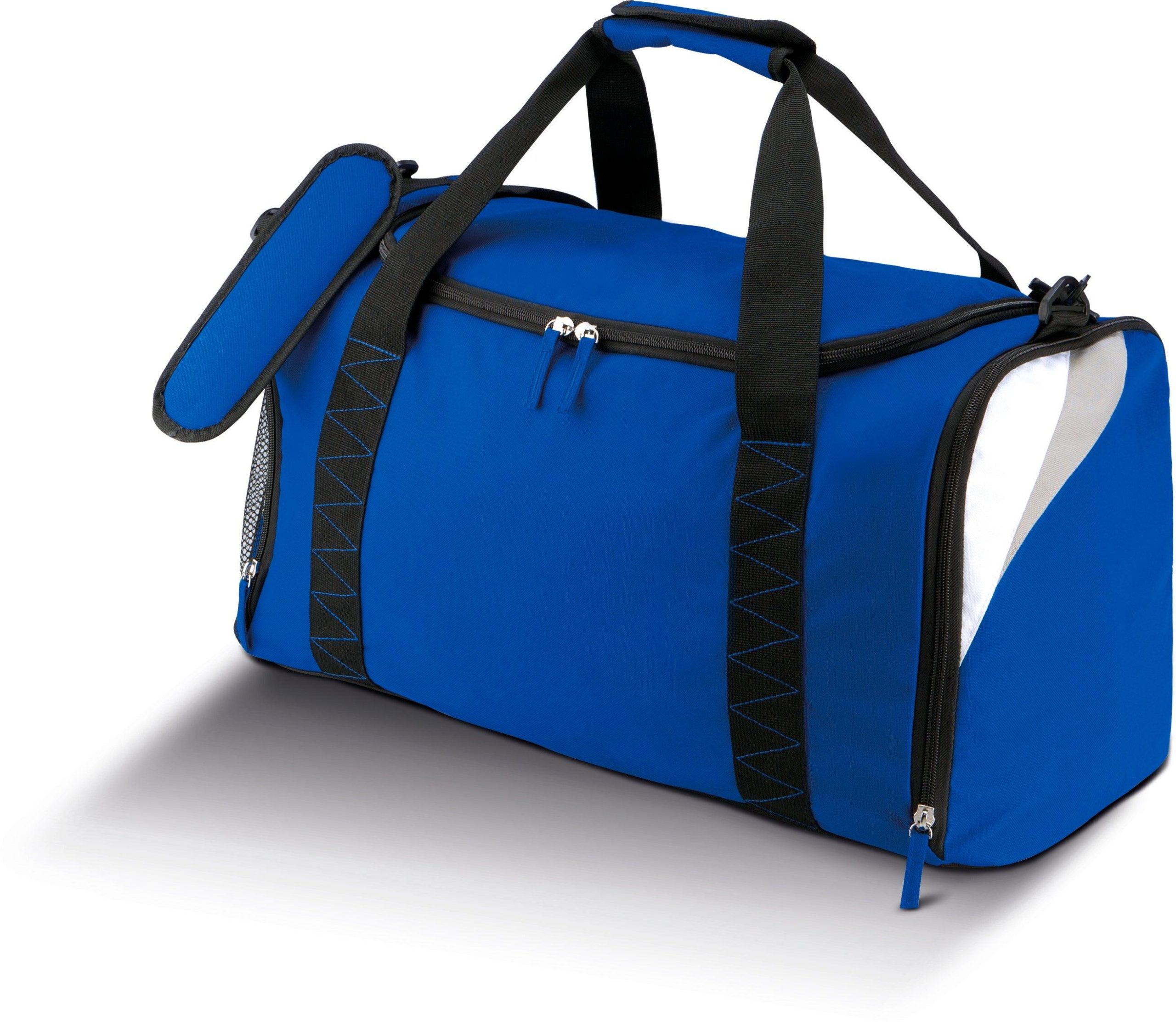 Sac de sport/ sports collectifs de taille moyenne : 55 cm en polyester 600D. 2 poches côté : 1 pour rangement chaussures, 1 poche côté extérieure en filet. Lanière d’épaule amovible et ajustable. Taille moyenne 44 litres
