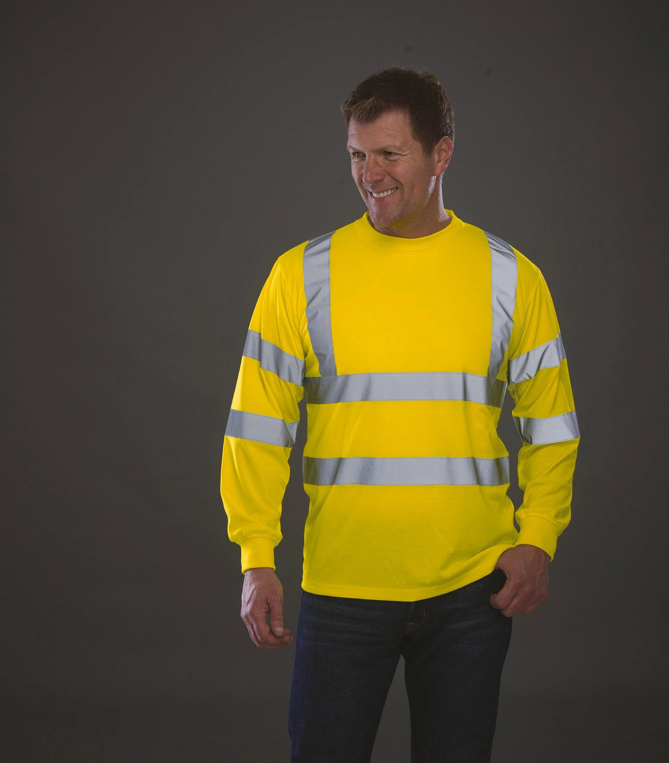 100% polyester. 2 bandes réfléchissantes (largeur 5 cm) autour du corps et des bras. Une bretelle réfléchissante sur chaque épaule. Col et poignets souples en bord-côte ton sur ton. Emballage individuel. Conforme à la norme EN ISO 20471:2013 de catégorie 3 et à la norme relative aux « Vêtements de Haute Visibilité » des chemins de fer UK GO/RT 3279 Issue 8:2013 (Hi-Vis Orange uniquement).