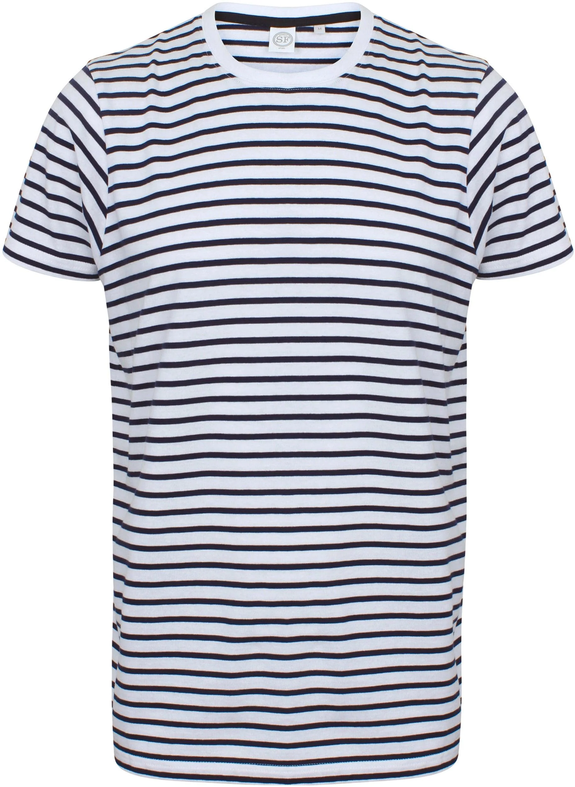 Single Jersey 100% coton (Heather Grey : 85% coton / 15% viscose). Col bord-côte avec élasthanne. Bande de propreté à l’encolure. Coutures latérales. Finition double aiguille bas de manches et de vêtement. Etiquette détachable.
