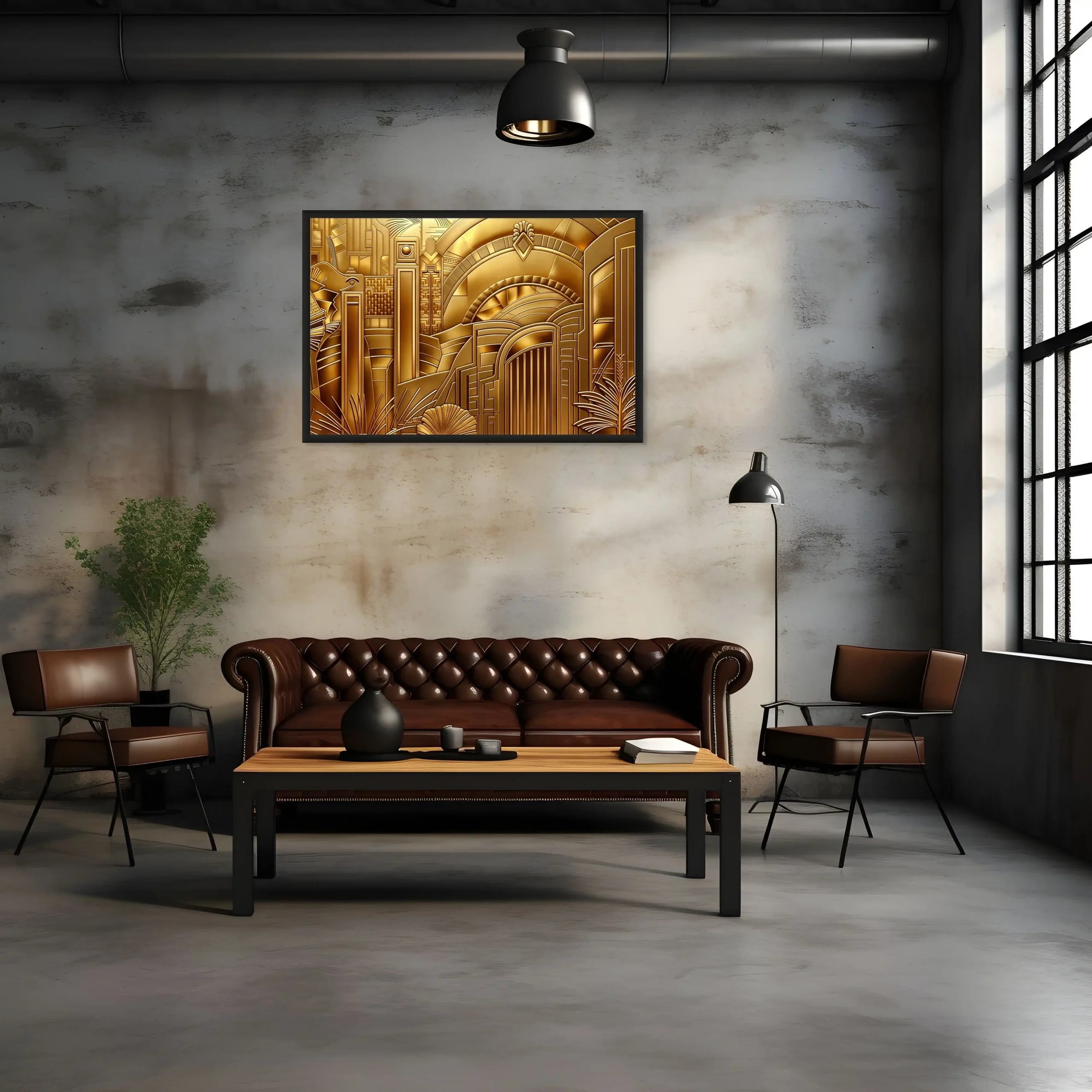 Tableau Art Déco Design : Un Voyage Doré dans l’Abstraction