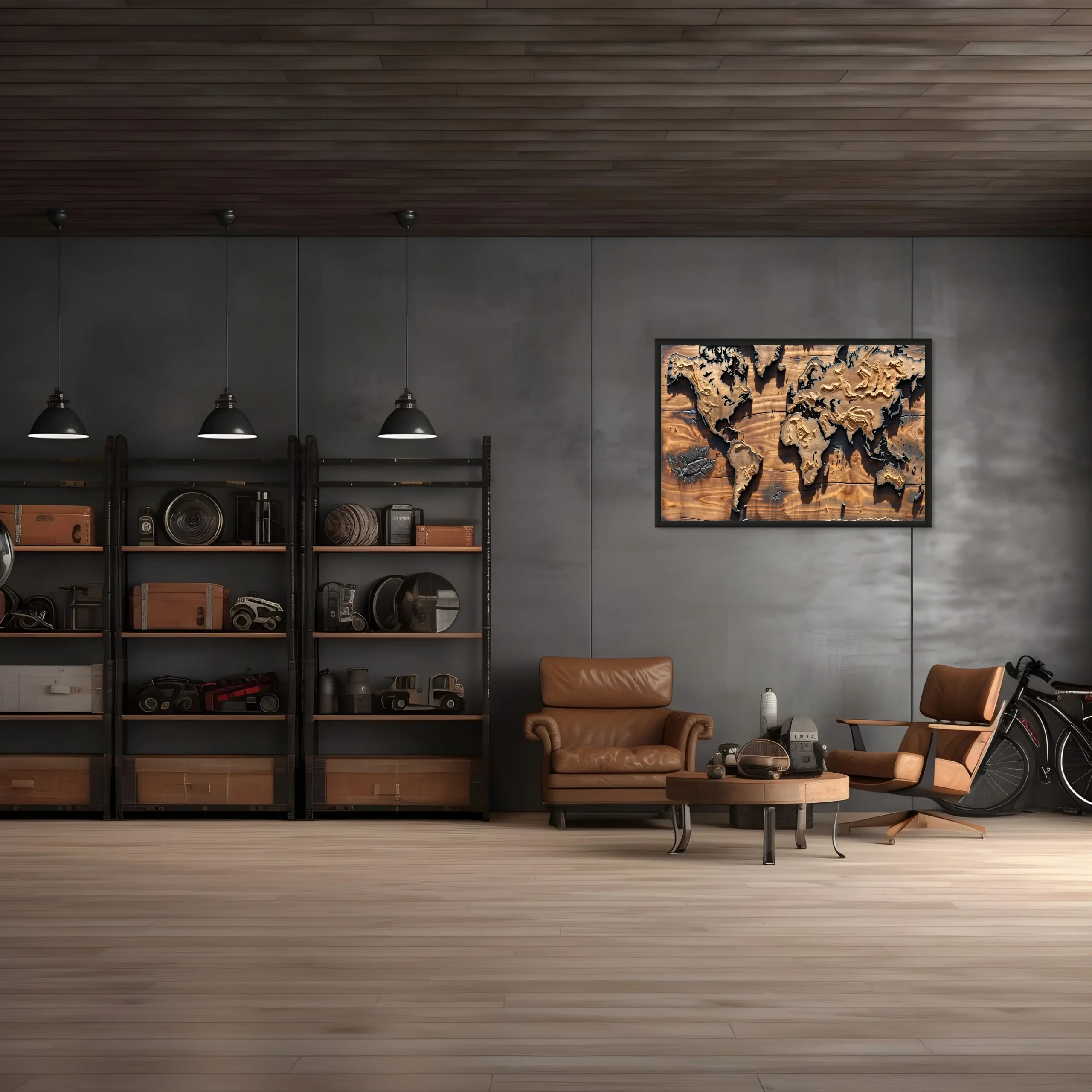 Découvrez la fusion parfaite entre cartographie traditionnelle et art moderne avec notre Tableau Carte du Monde Bois, une pièce de décoration murale unique qui transforme les frontières et continents en œuvres d’art. Avec sa conception en relief et sa finition dorée lumineuse, ce tableau apporte une touche de sophistication et d’élégance à votre espace.