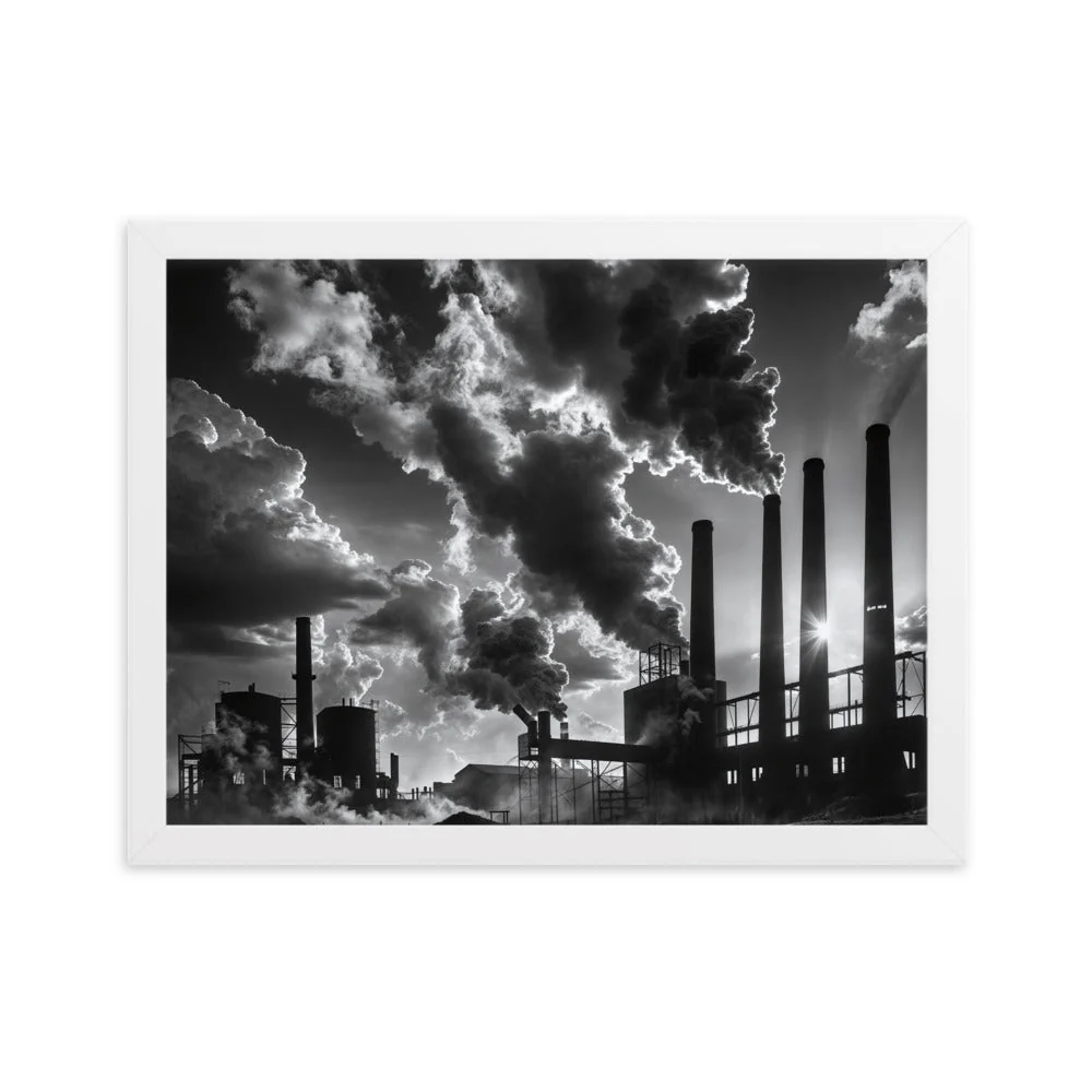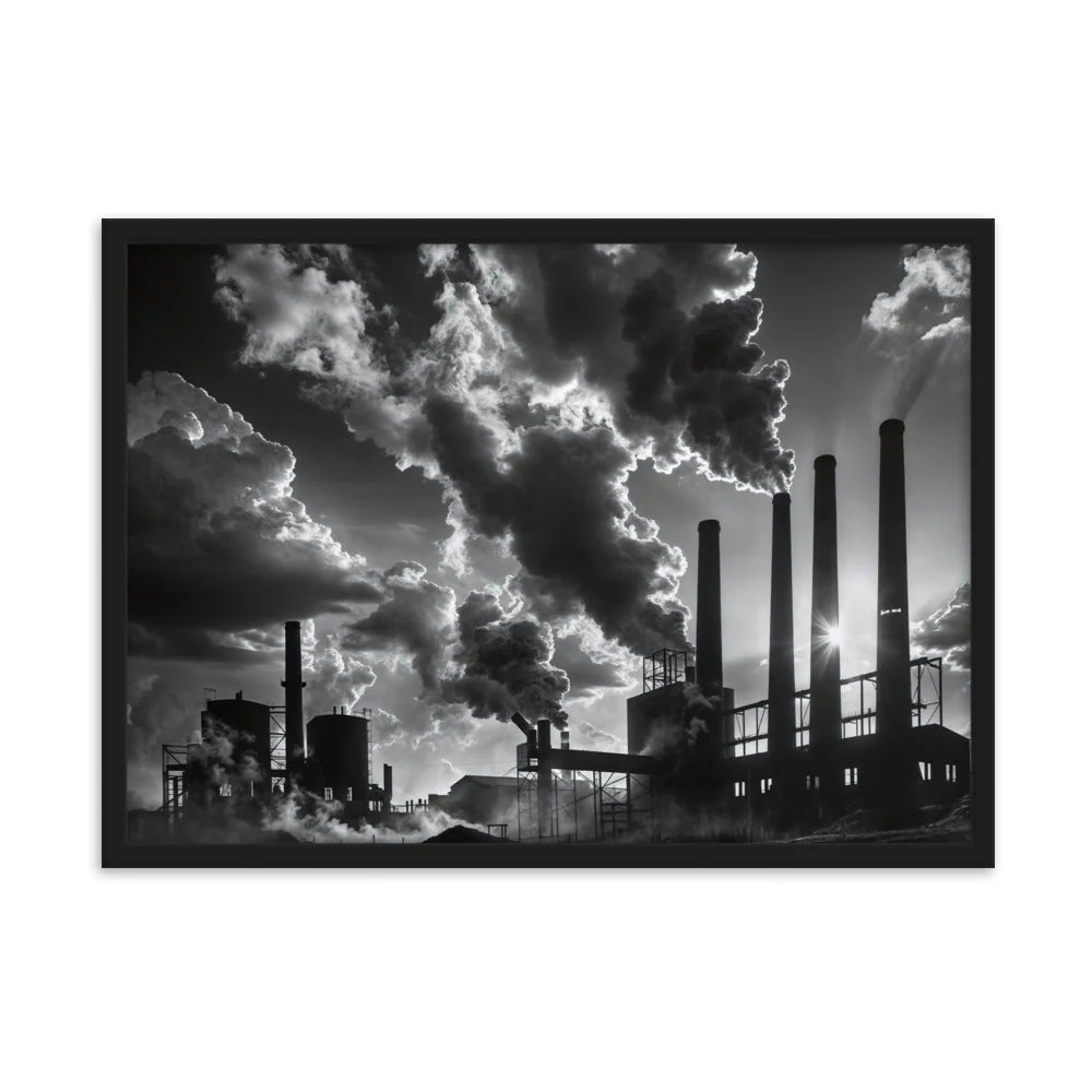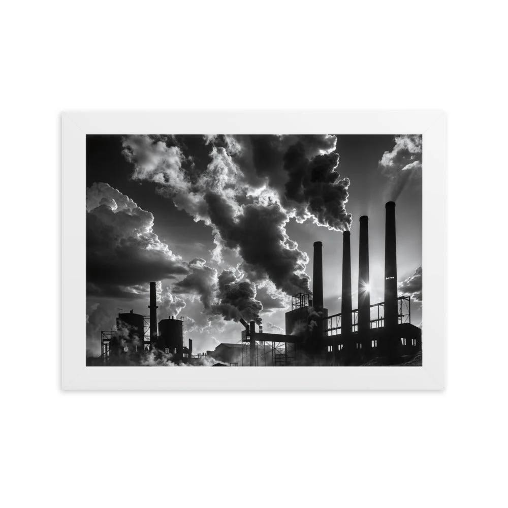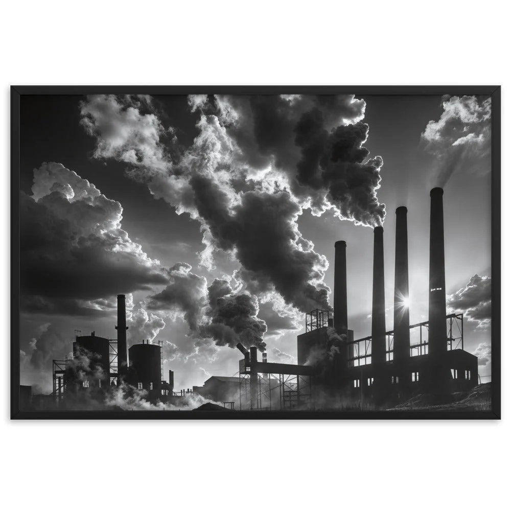 Tableau noir et blanc industriel – Affiche imprimée encadrée.