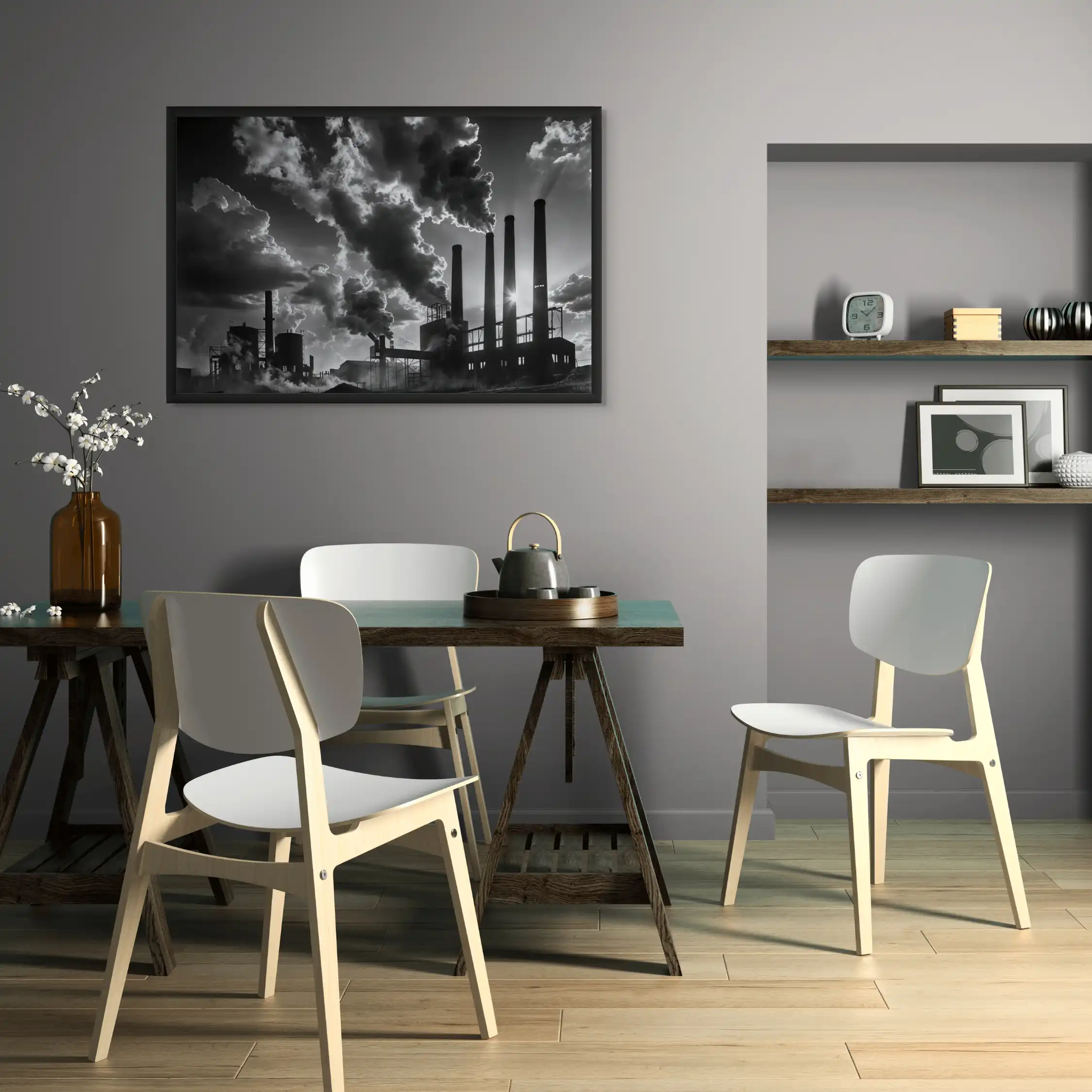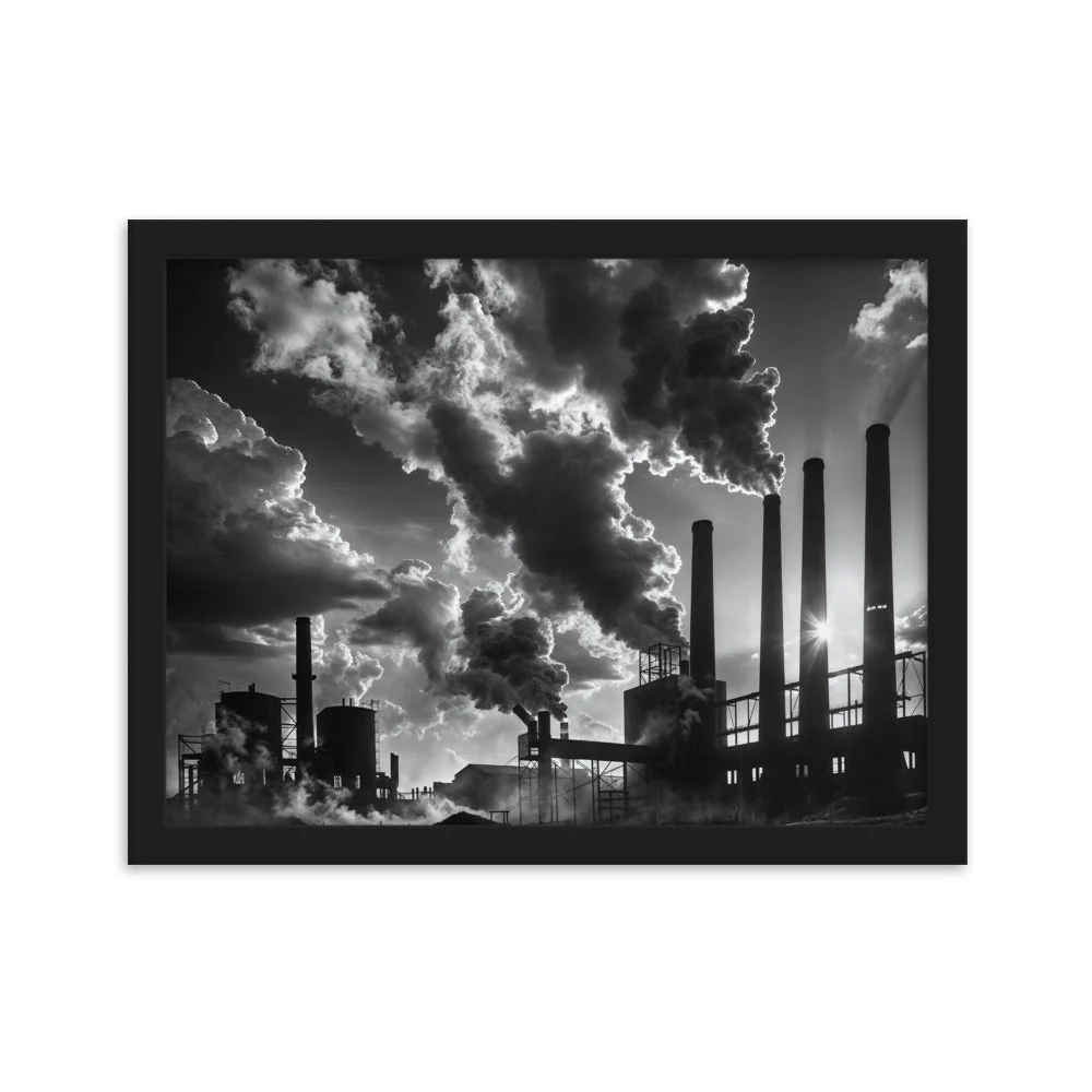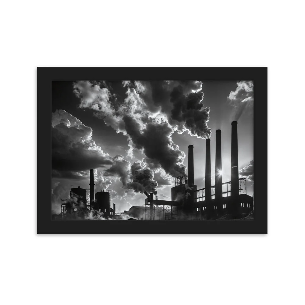Tableau noir et blanc industriel – Affiche imprimée encadrée.