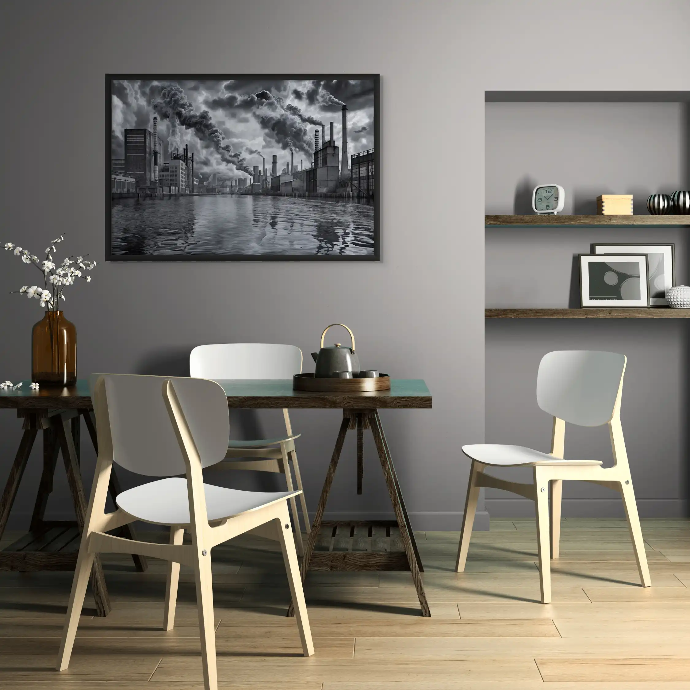 Bien que l’affiche présente un paysage industriel monochrome, les nuances de gris traduisent une variété riche et multicolore, idéale pour compléter un intérieur contemporain ou pop art. Son grand format est un choix audacieux pour créer une atmosphère zen dans votre espace de vie.