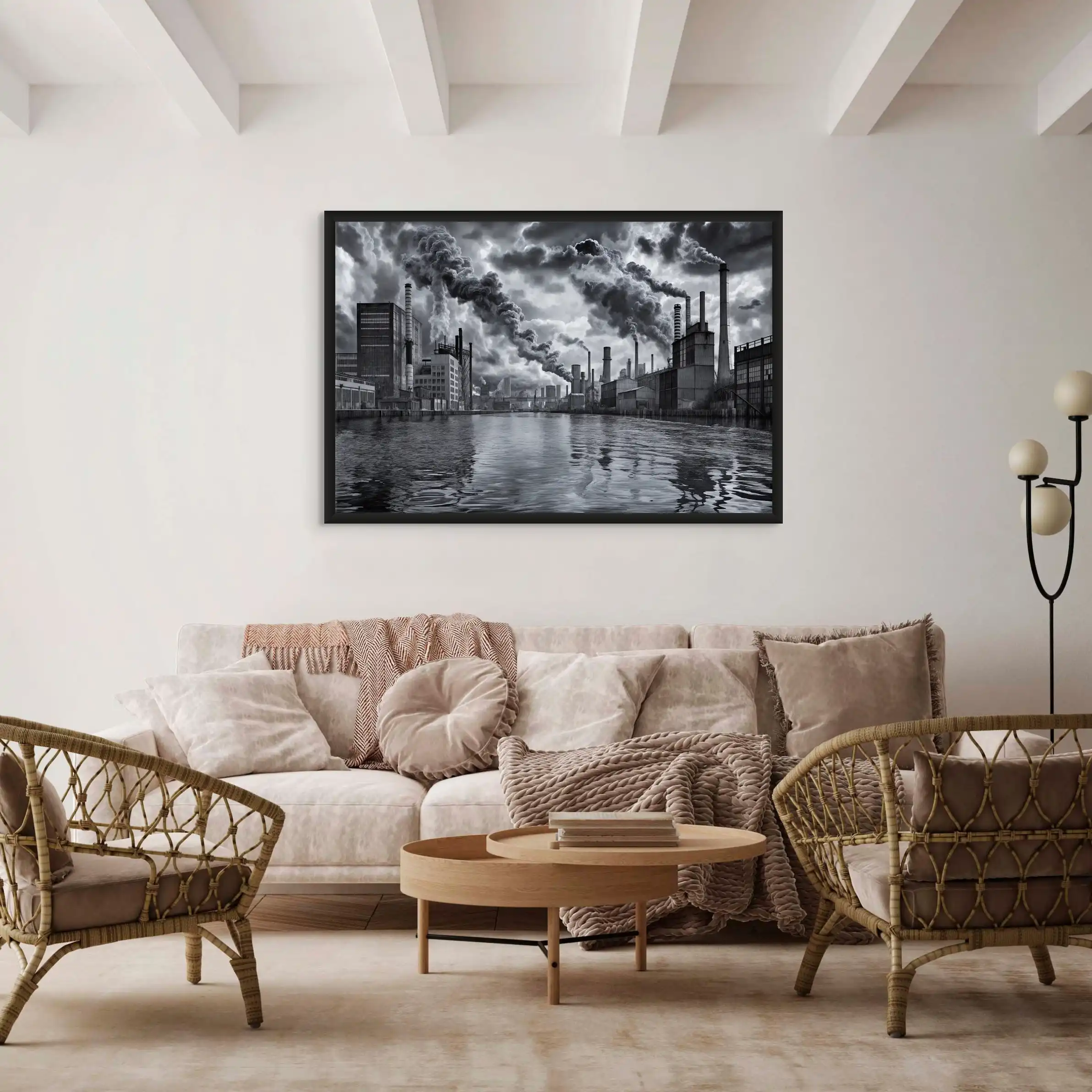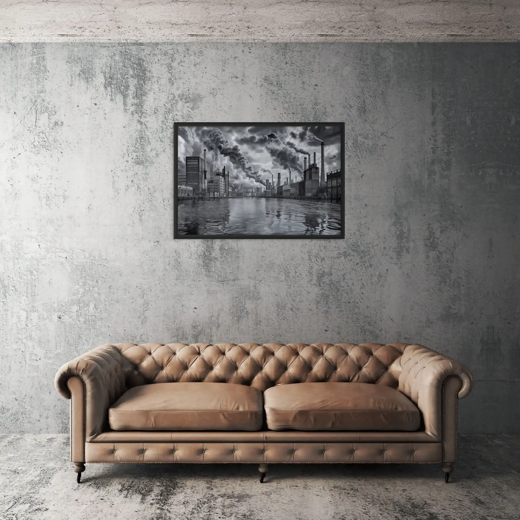 Chaque affiche est méticuleusement encadrée et prête à être accrochée. Avec un cadre en bois massif, elle est non seulement élégante mais aussi durable. L’image panoramique, tendue sur châssis, offre une vue immersive de l’art mural industriel.
